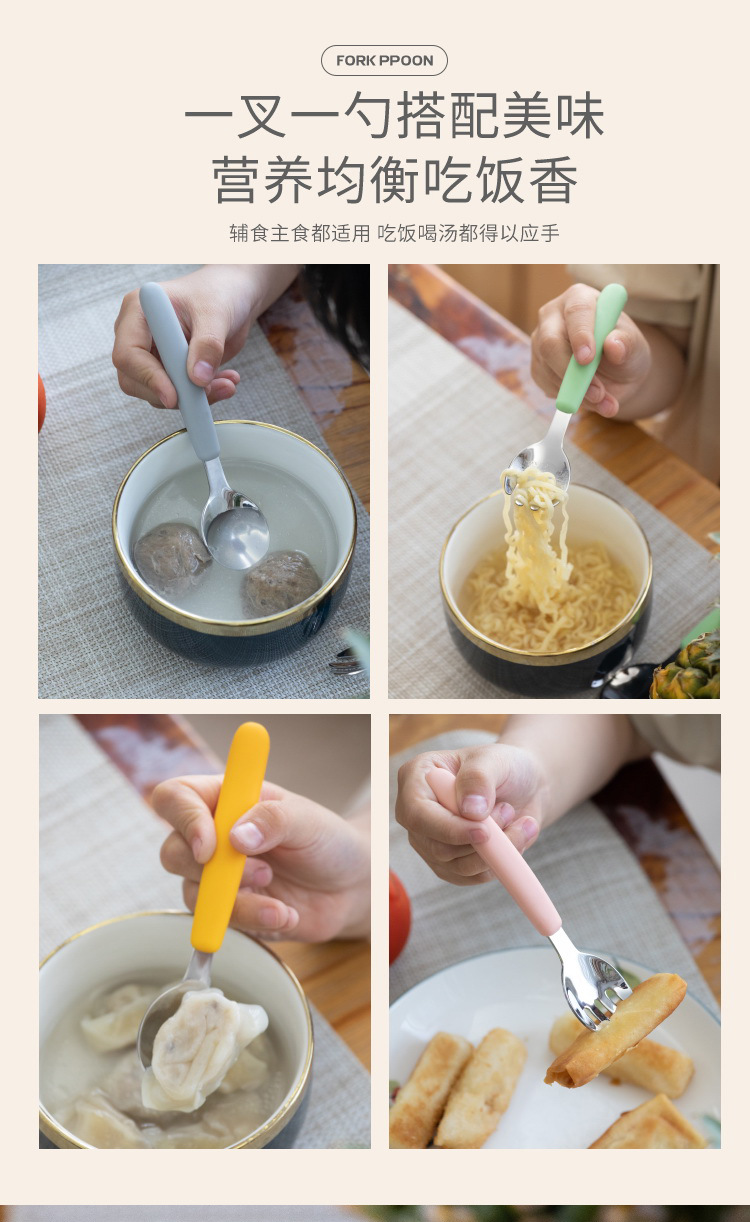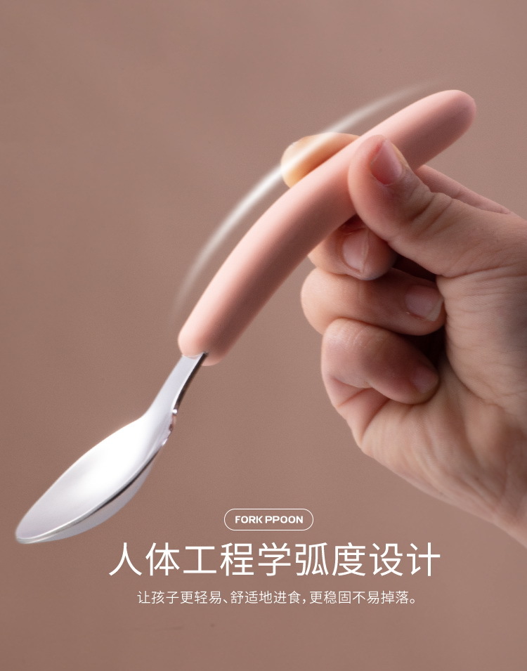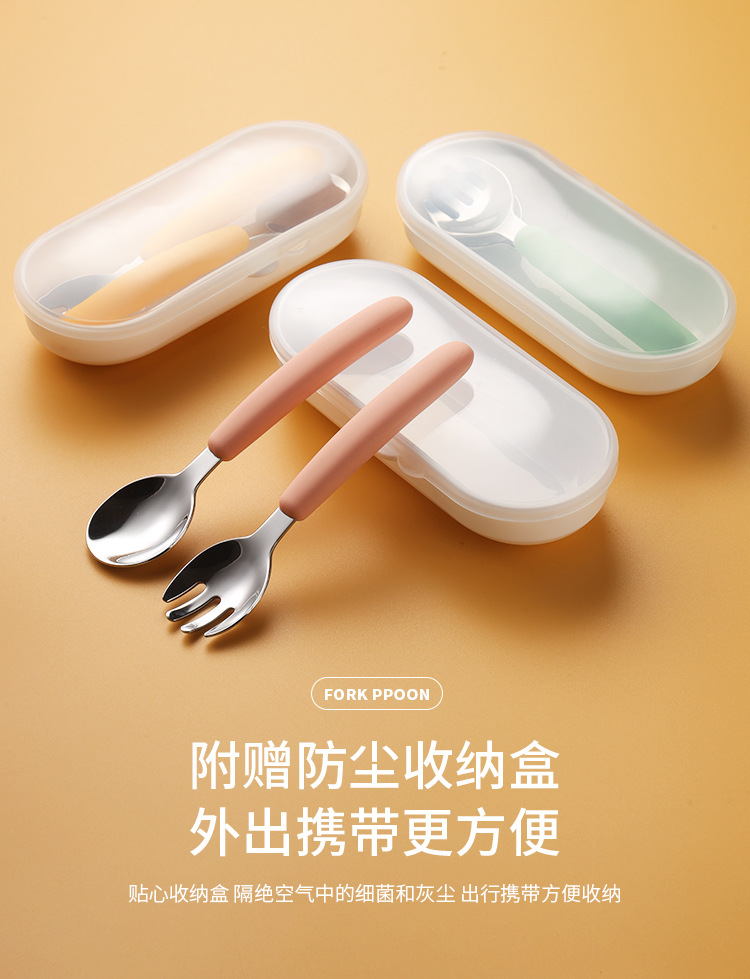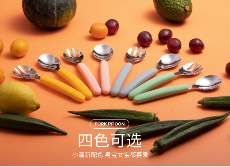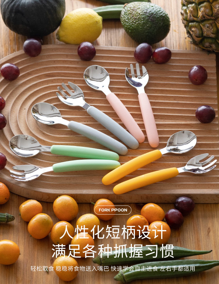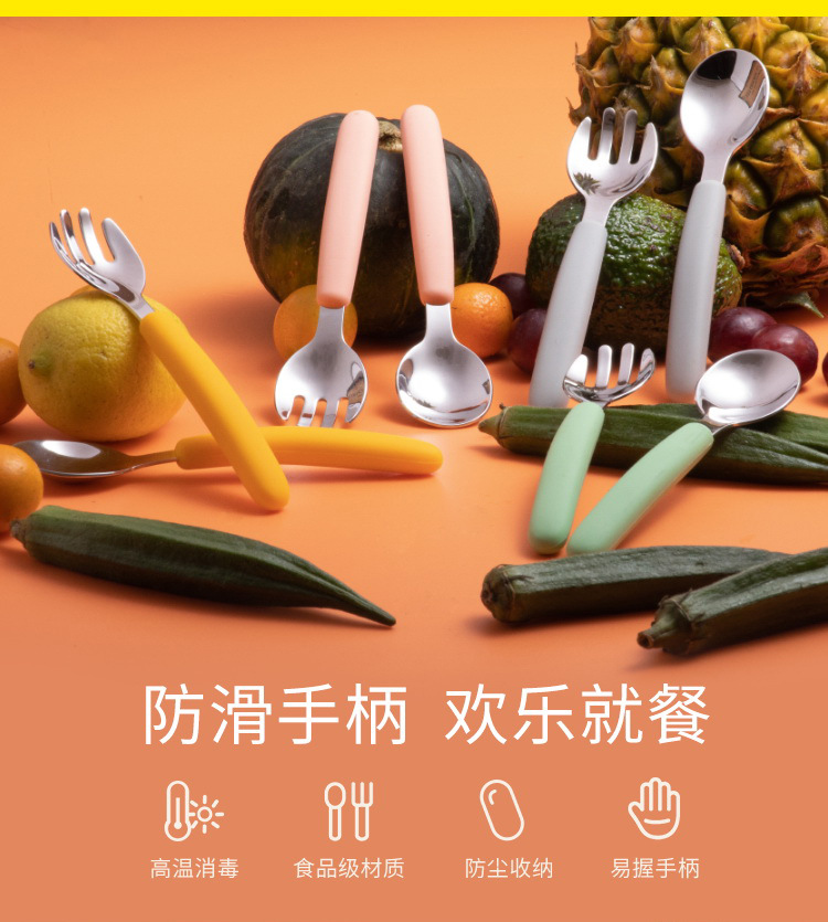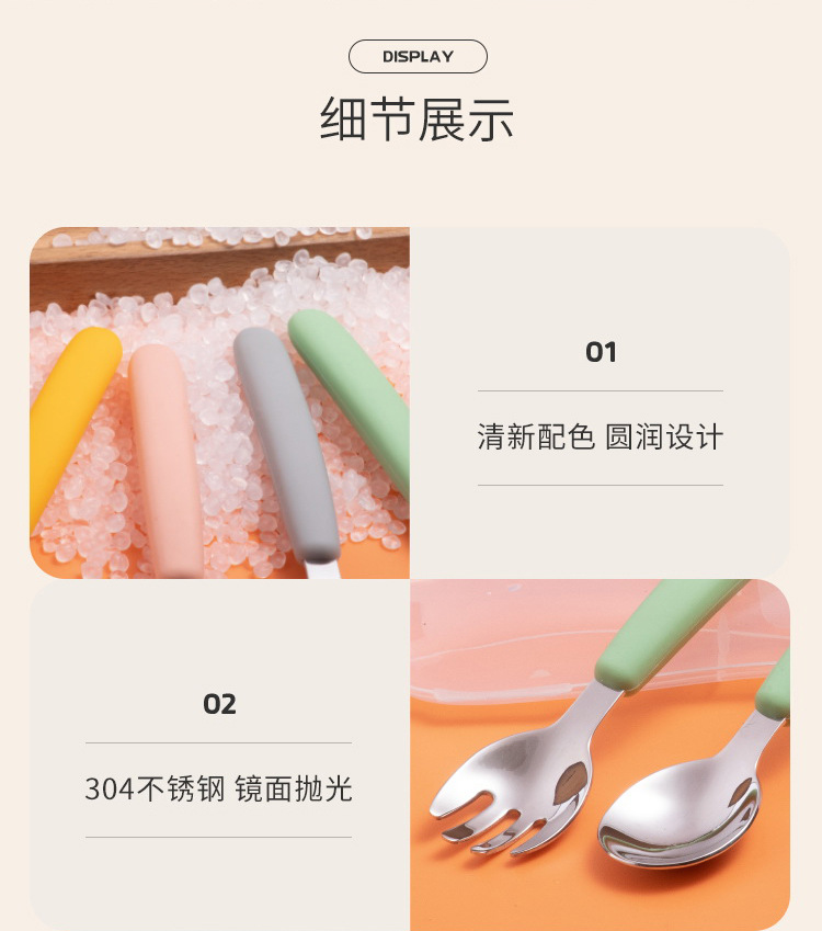 304 tenedores y cucharas de acero inoxidable, grado alimenticio para bebés, cucharas de mango de silicona, vajilla auxiliar, juegos de vajilla para tiendas infantiles y maternas