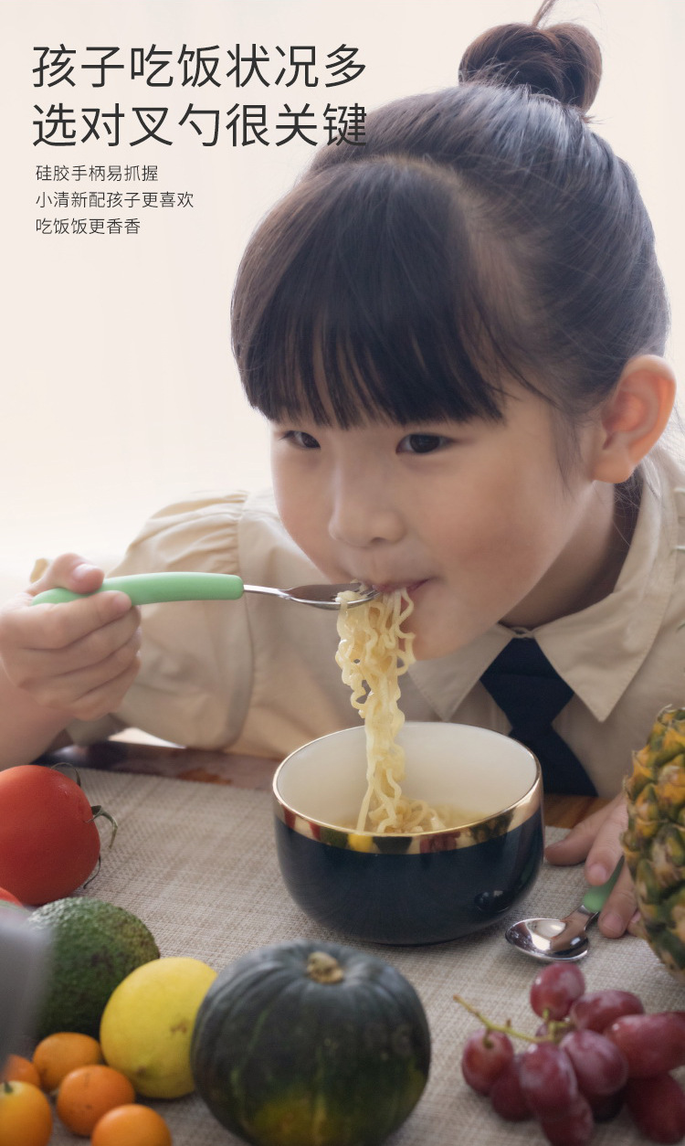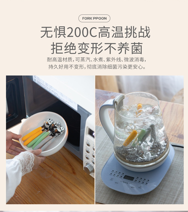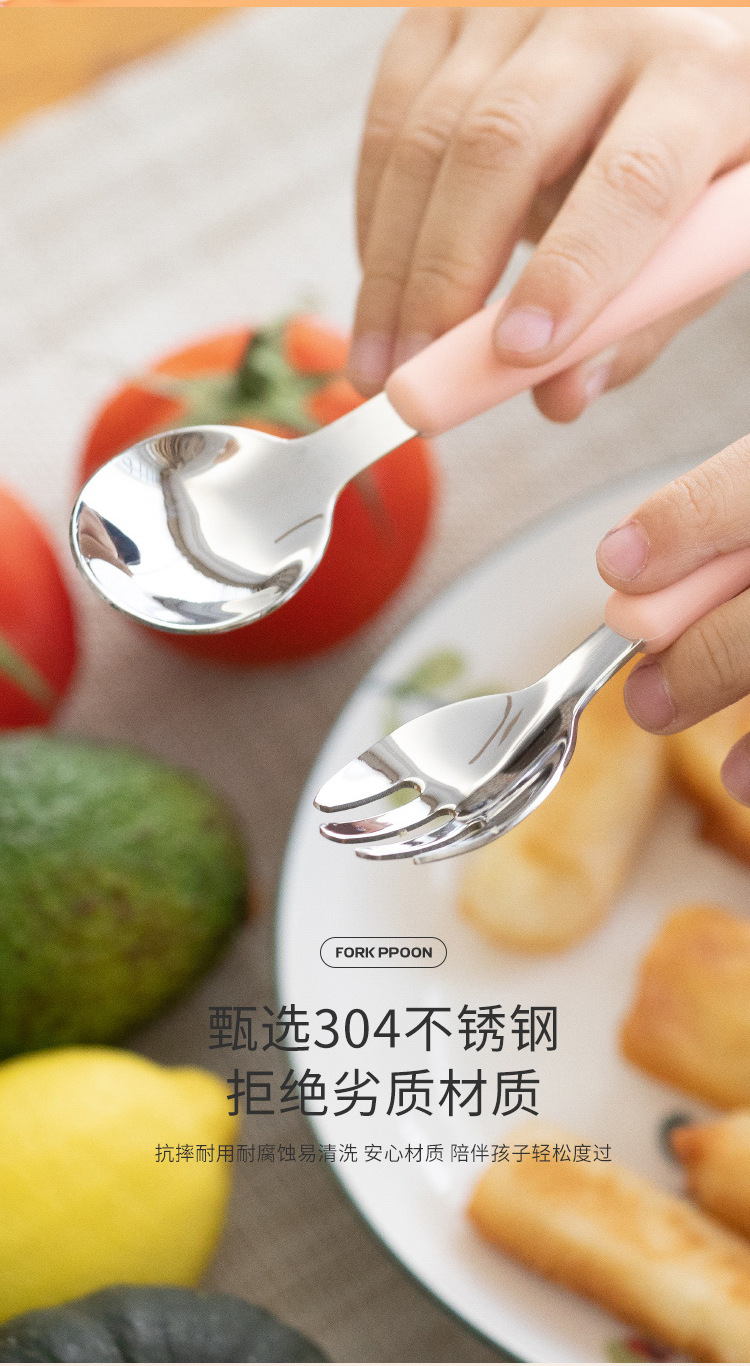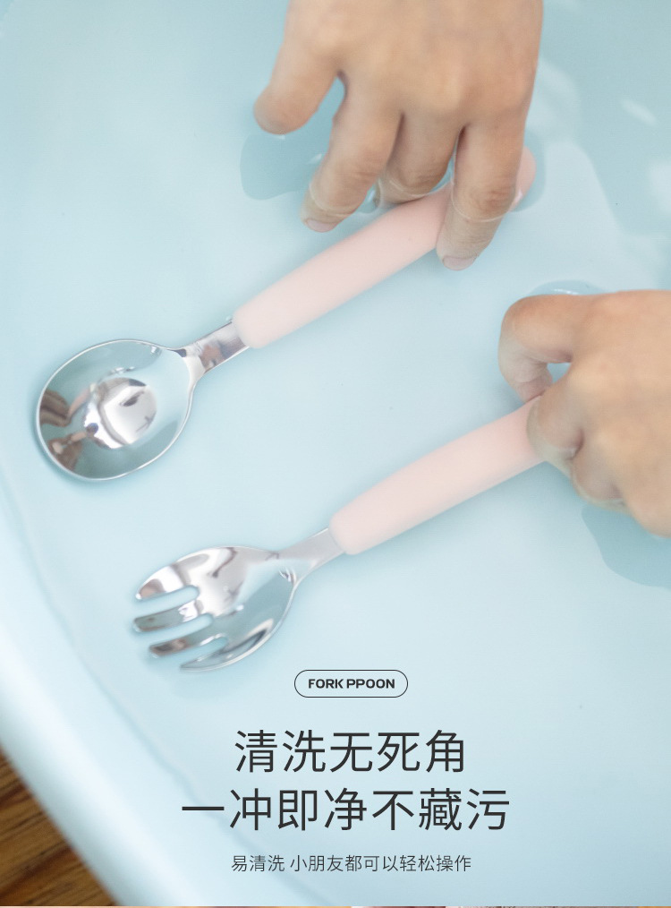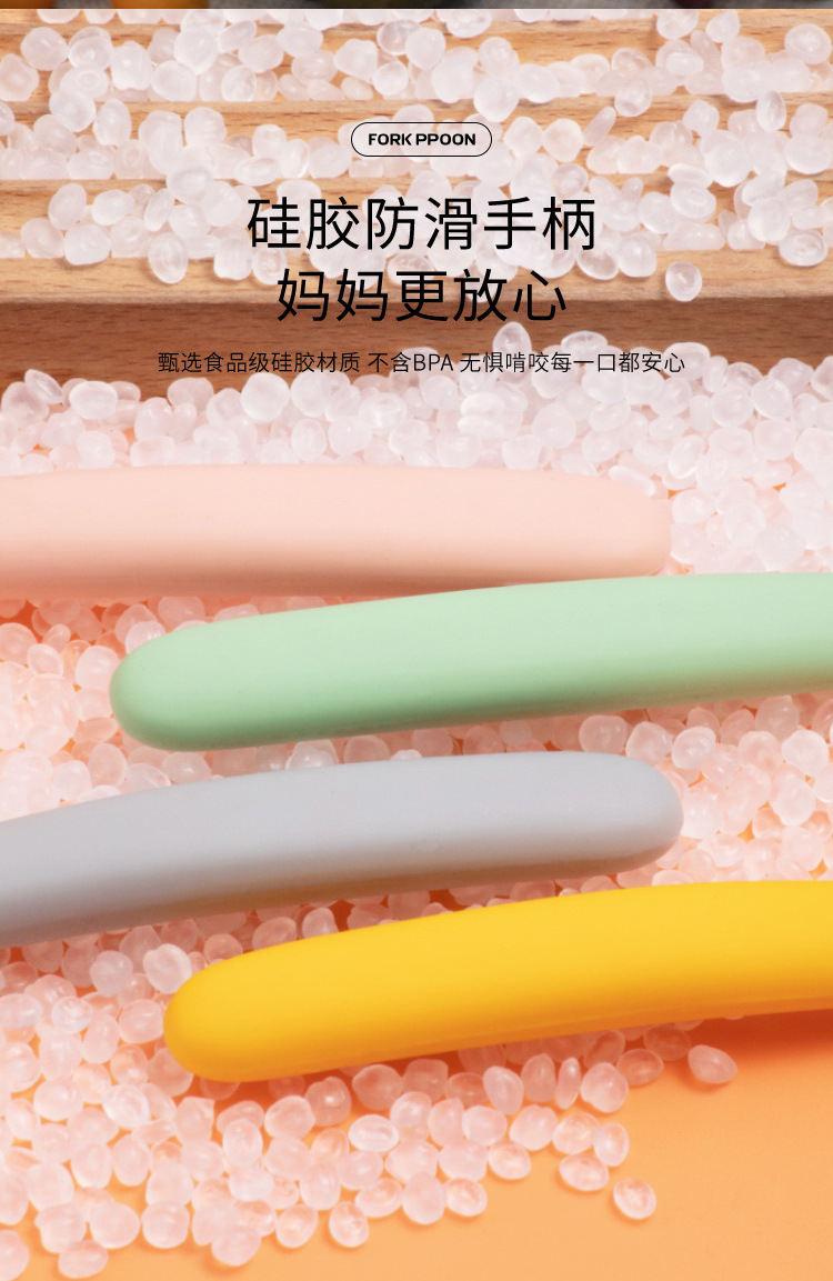 304 tenedores y cucharas de acero inoxidable, grado alimenticio para bebés, cucharas de mango de silicona, vajilla auxiliar, juegos de vajilla para tiendas infantiles y maternas