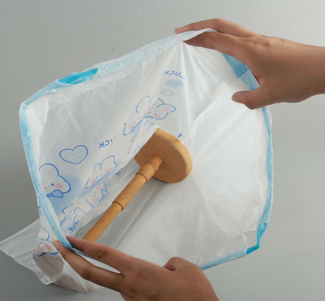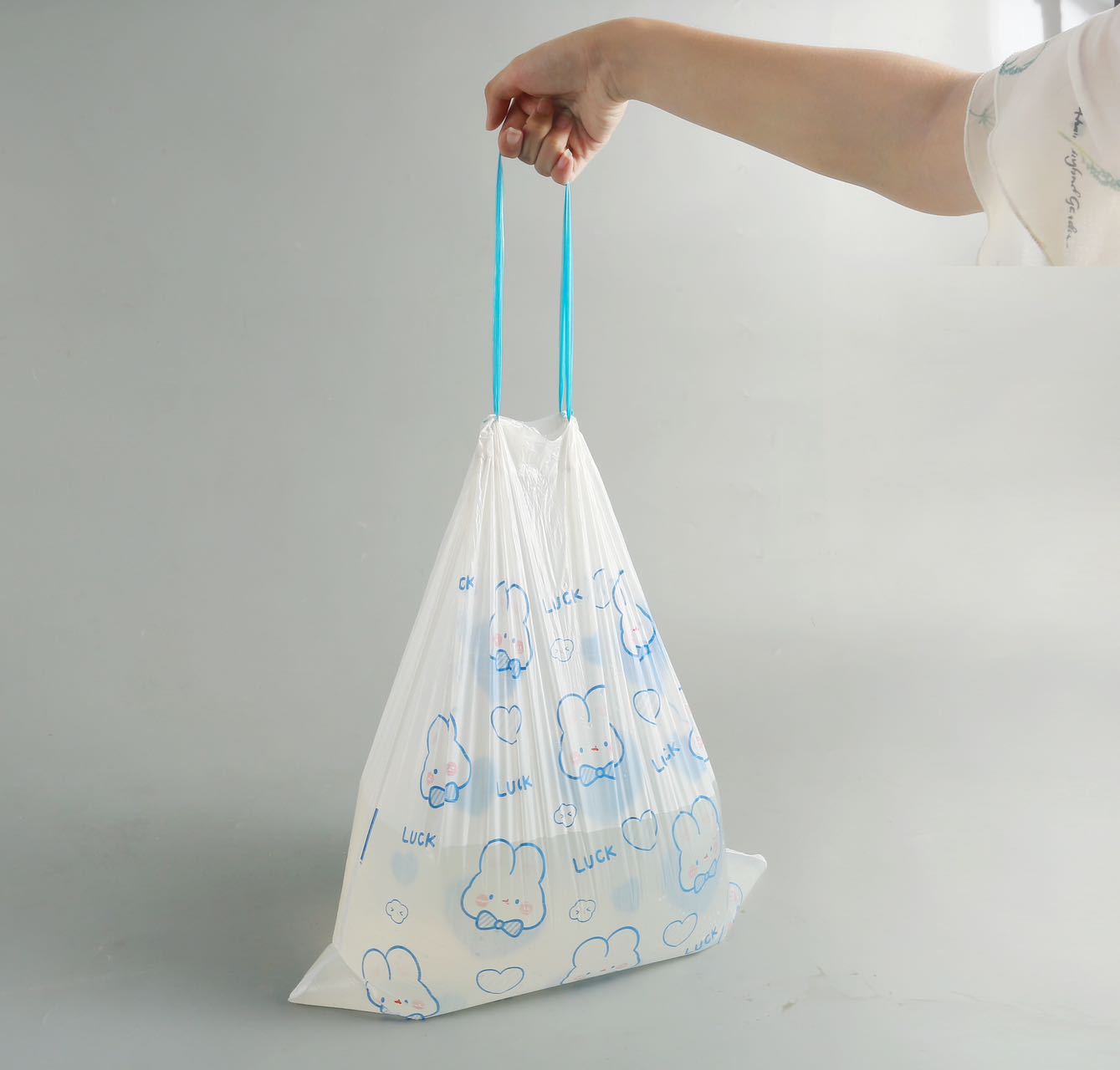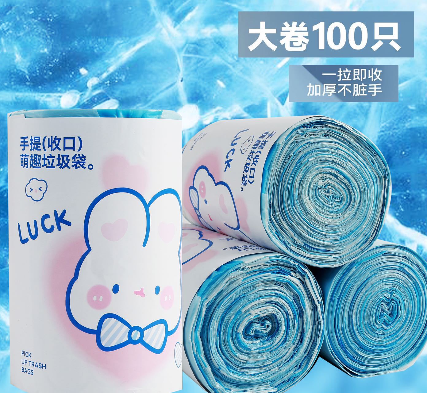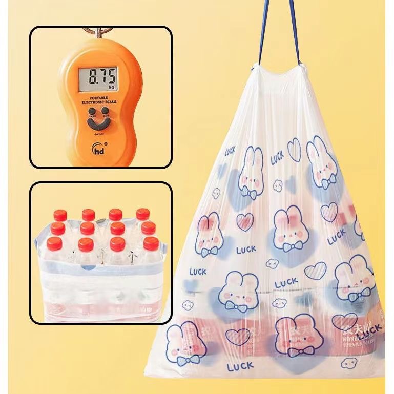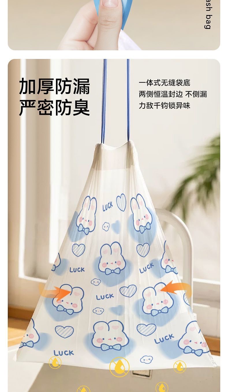 Blue Heart Rabbit tirando de la cuerda tipo lindo dibujo animado de alto valor facial cocina doméstica portátil engrosada bolsa de basura impresa 100