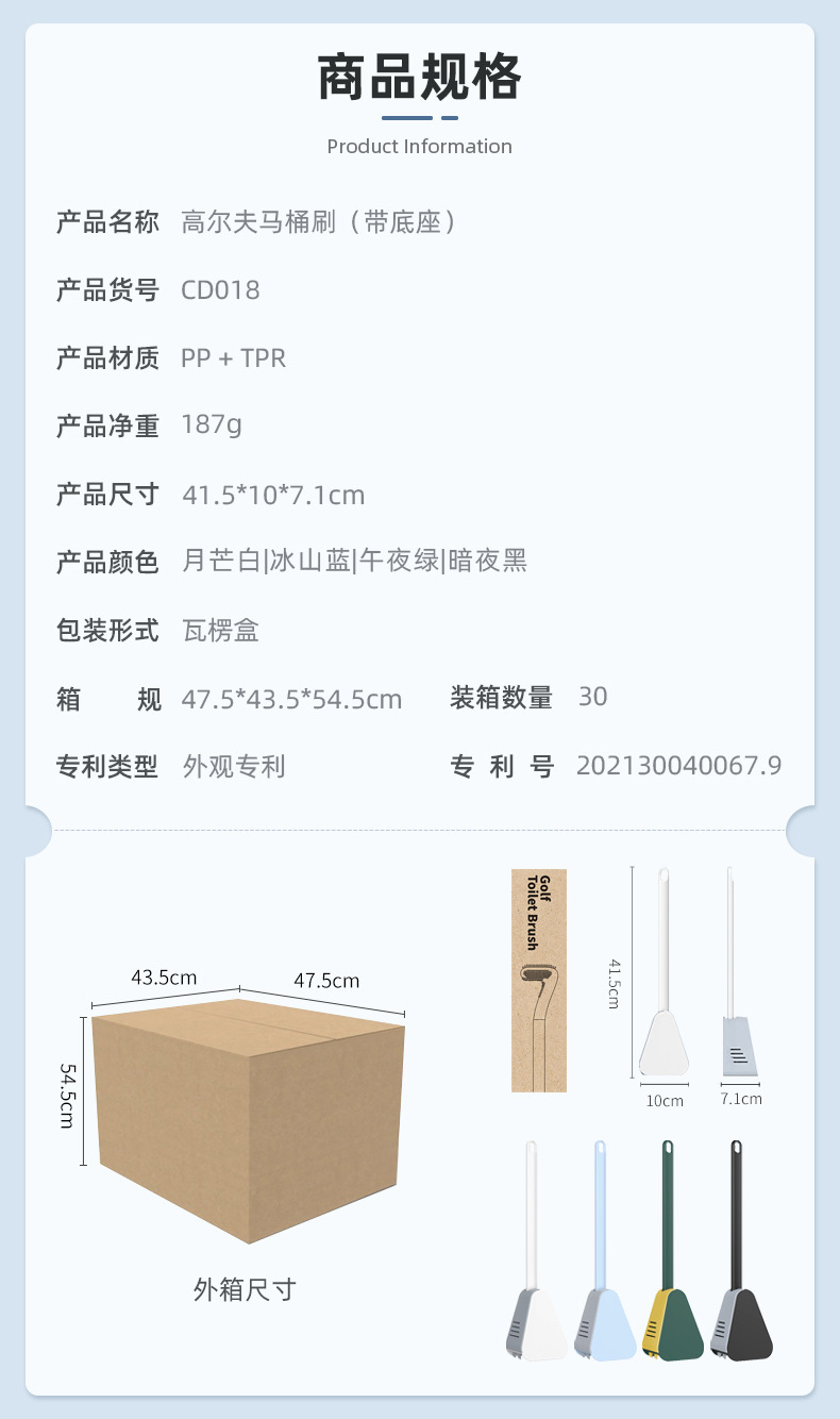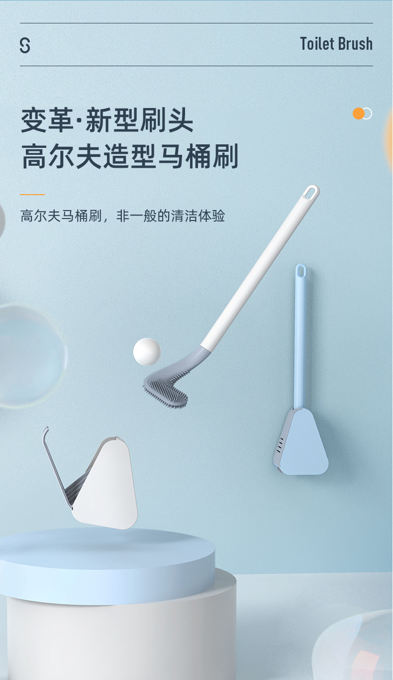 El fabricante suministra directamente cepillos de inodoro de goma blanda de golf sin ángulos muertos, mangos largos de pared para limpiar cepillos de inodoro con base a prueba de fugas.