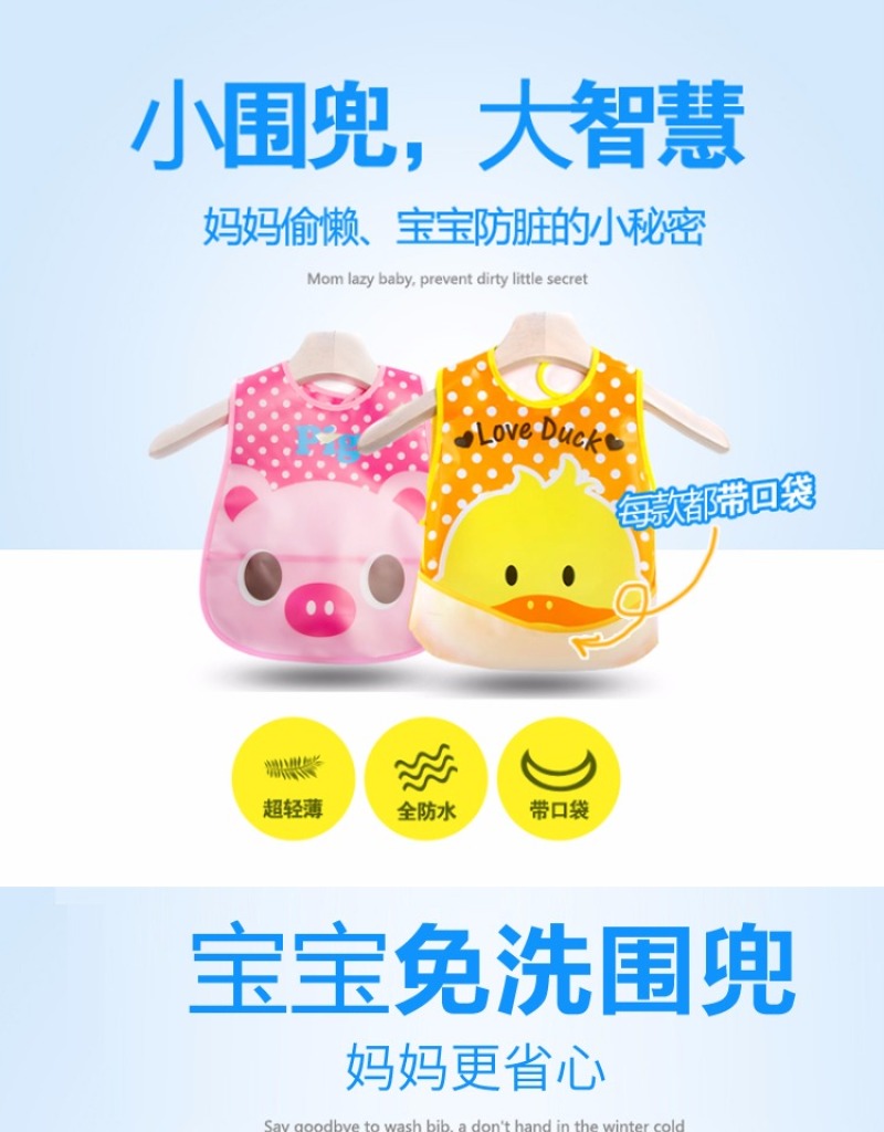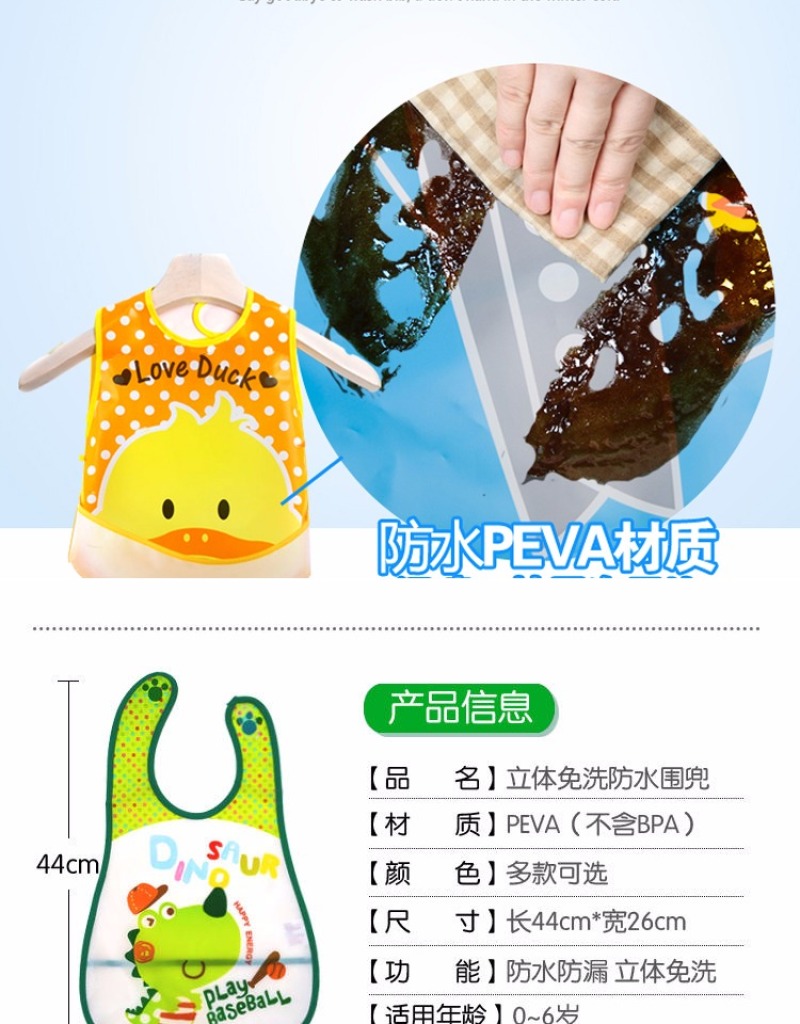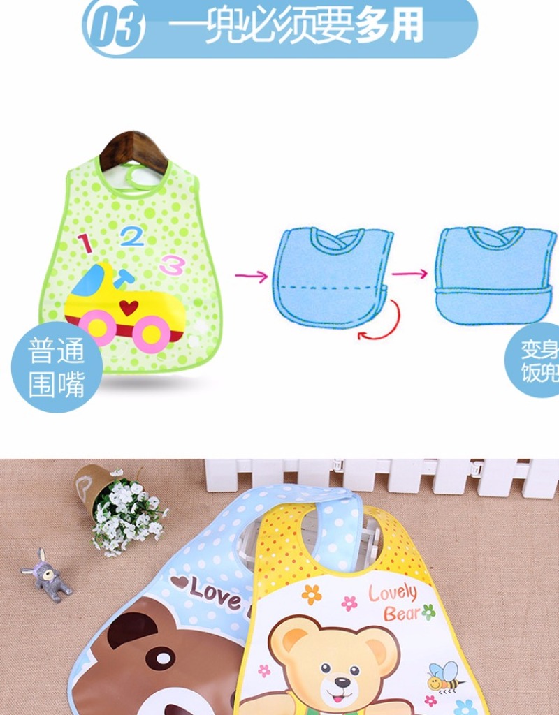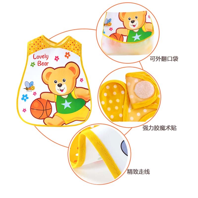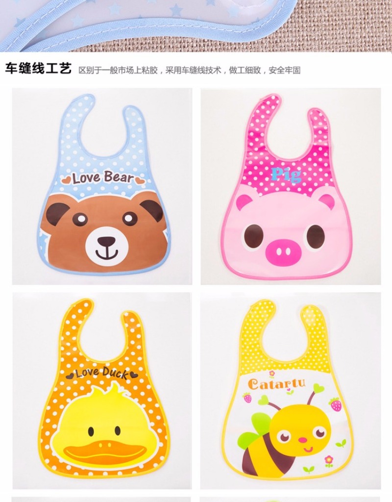 Babero del bebé Eva impermeable sin lavado babero de alimentación infantil dibujos animados toallas de saliva tridimensionales impermeable sin mangas