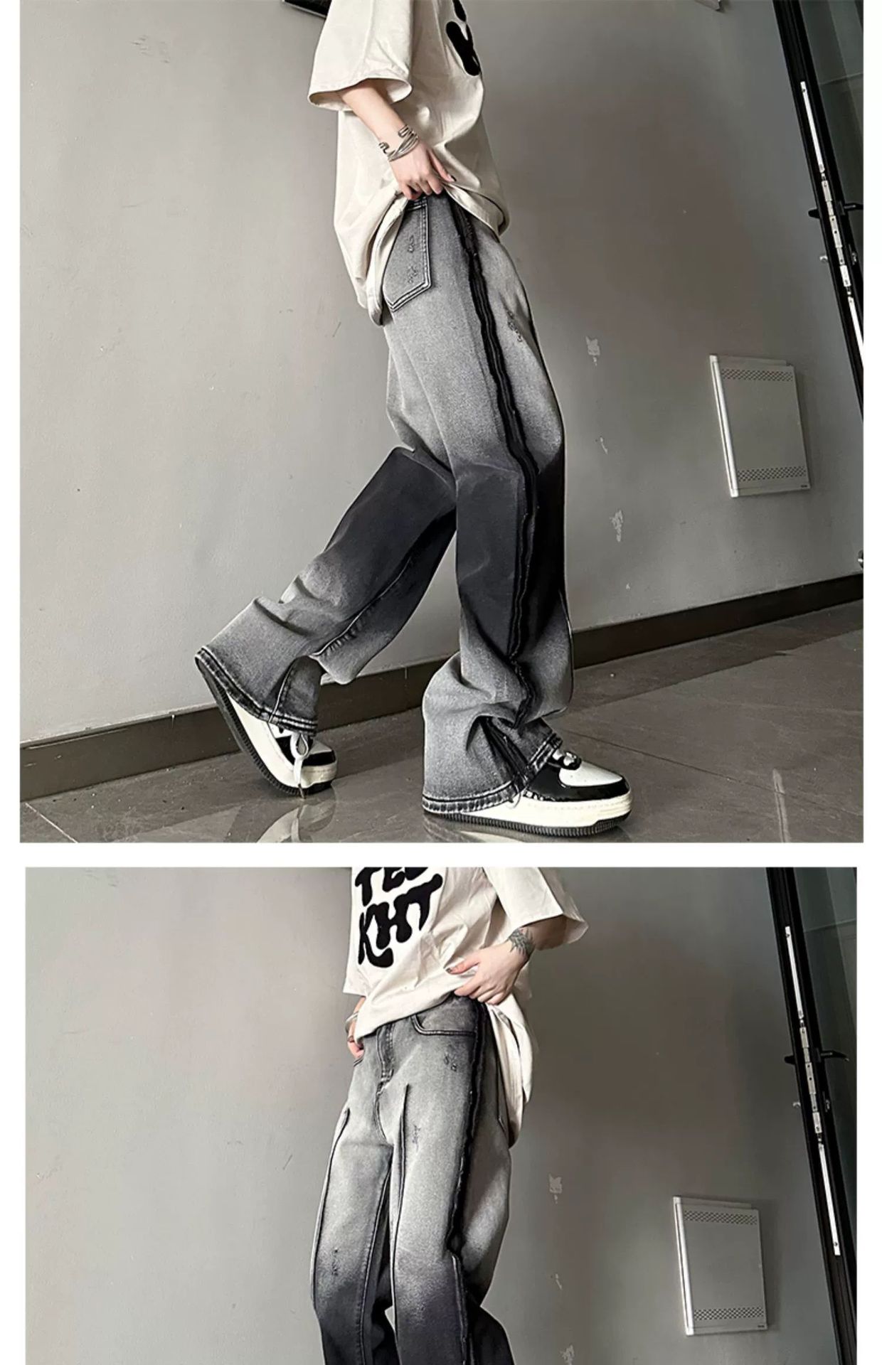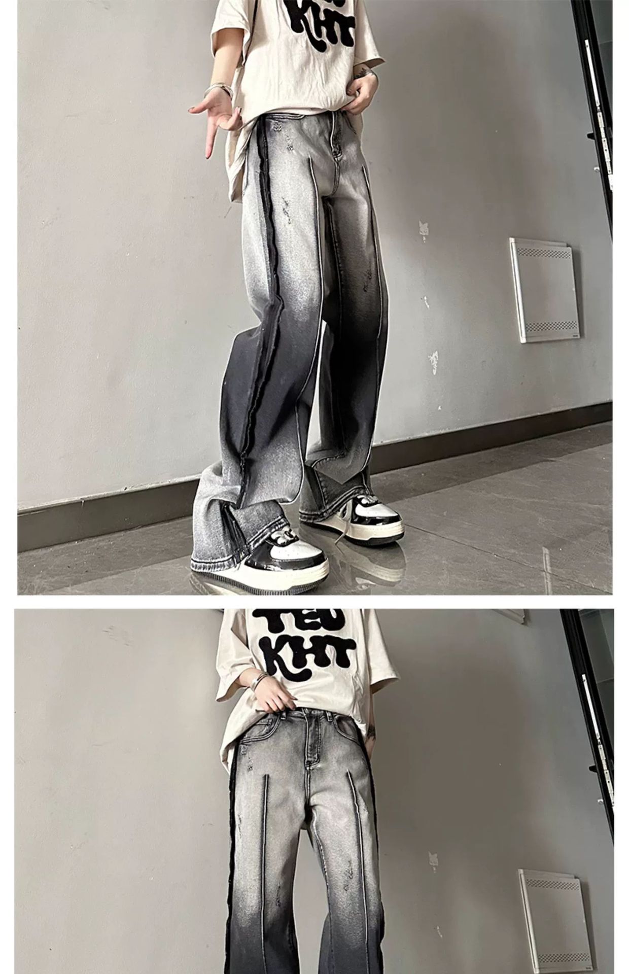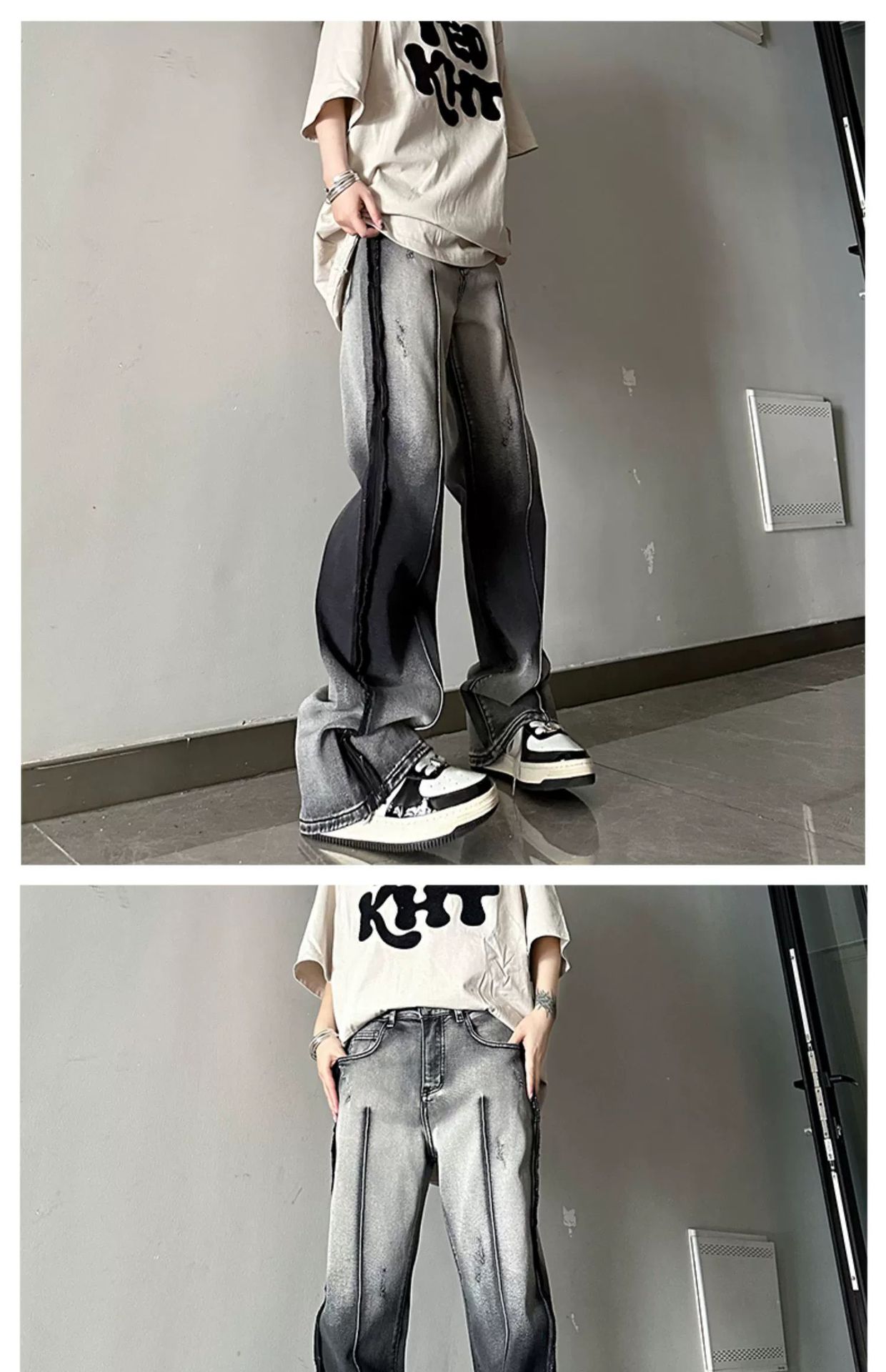 Los jeans de la calle alta Americana tienen un diseño de moda masculina y un tie - Dye para hacer pantalones de nicho viejos.