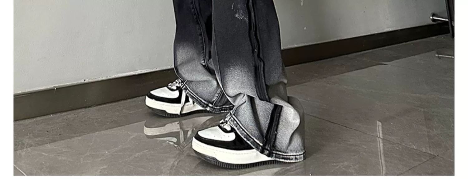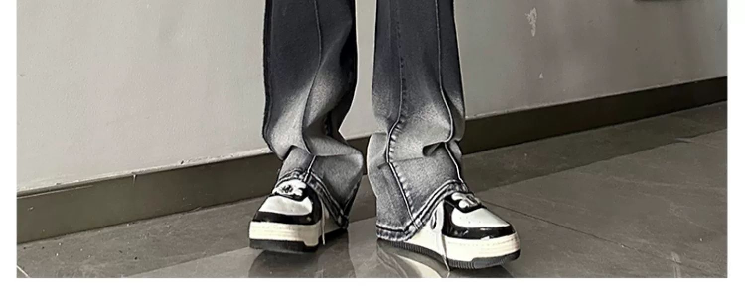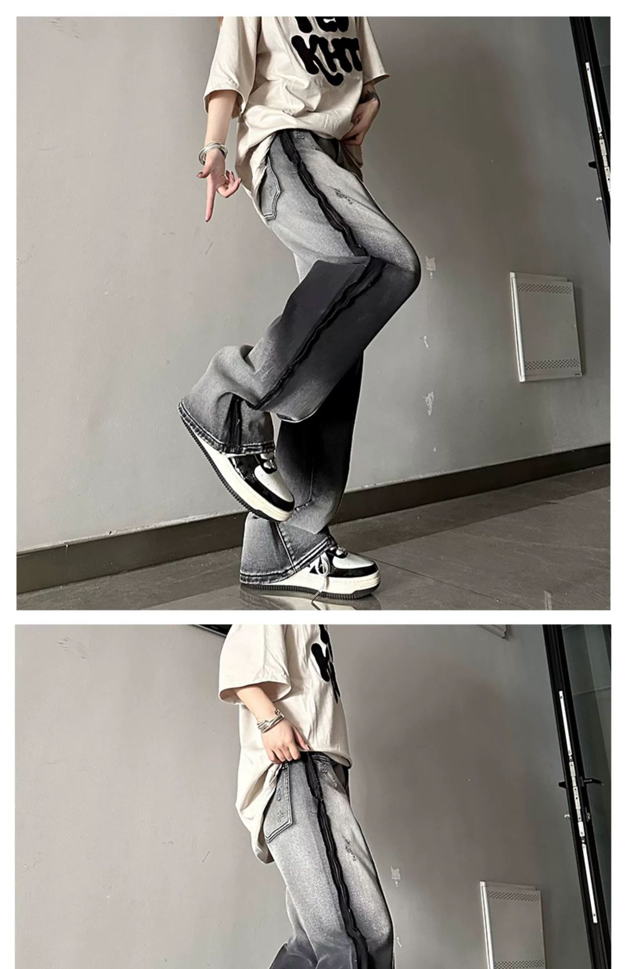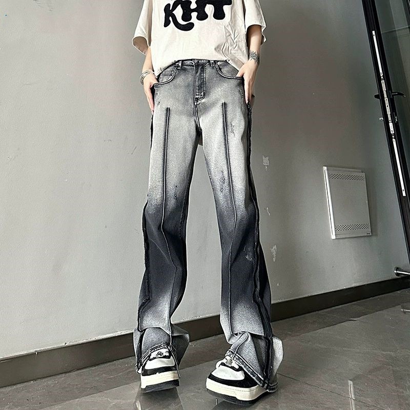Los jeans de la calle alta Americana tienen un diseño de moda masculina y un tie - Dye para hacer pantalones de nicho viejos.
