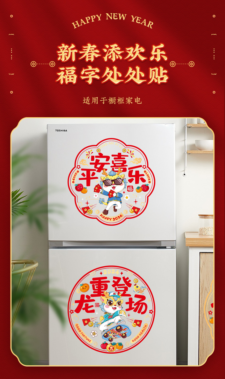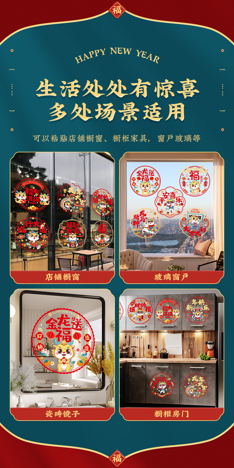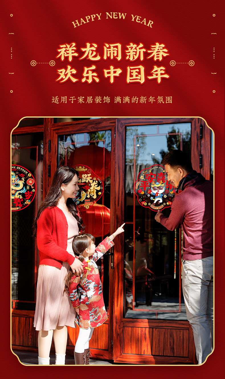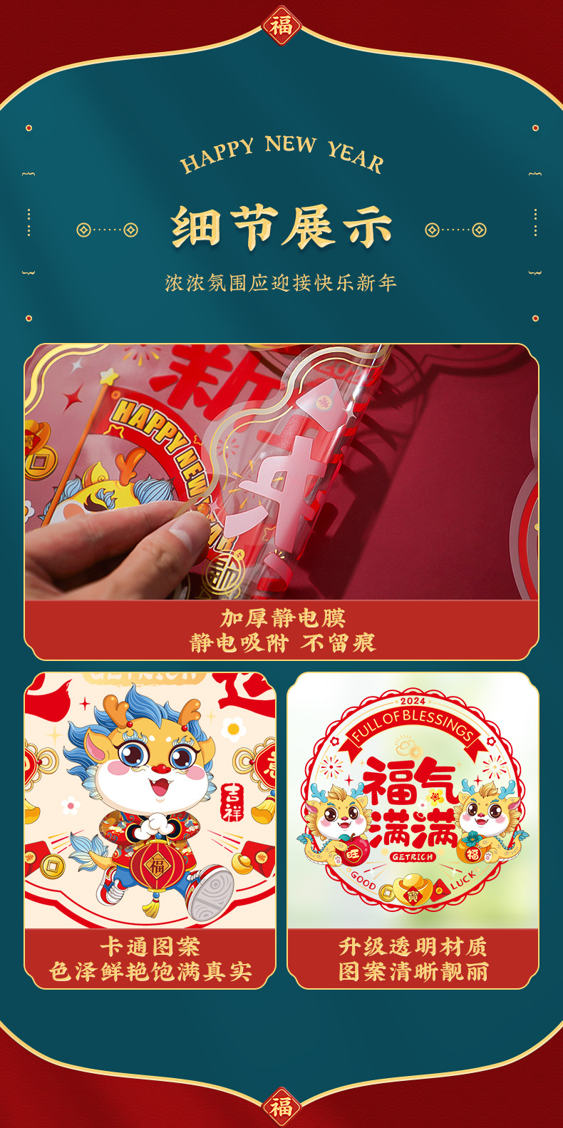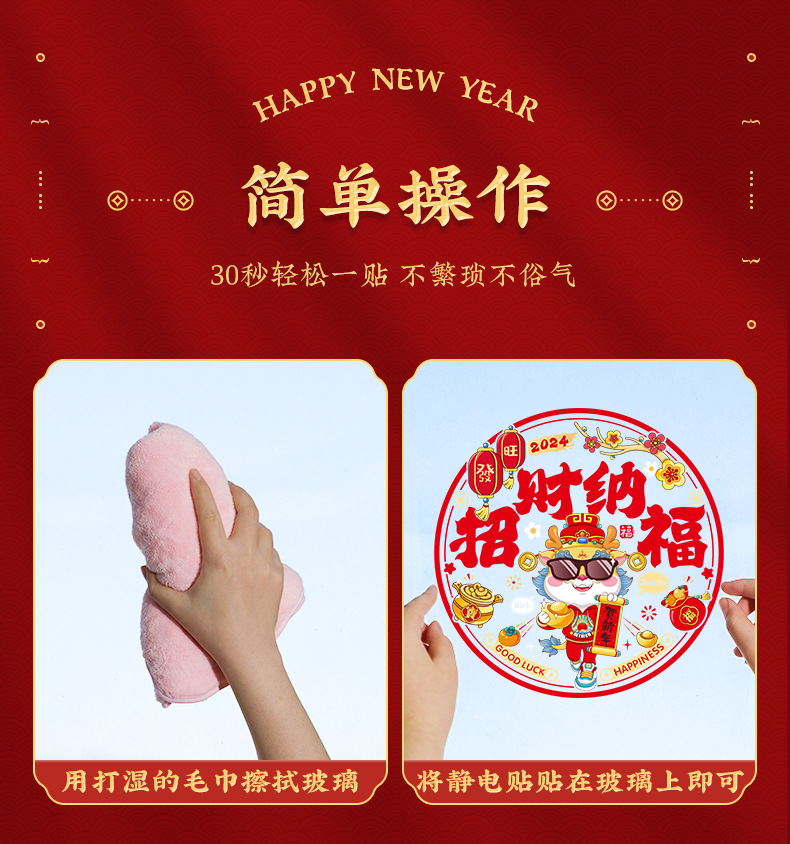 2024 nuevas ventanas del año del dragón, flores del Festival de primavera, productos decorativos de año nuevo, puertas de vidrio pegadas con pegatinas electrostáticas para el año nuevo