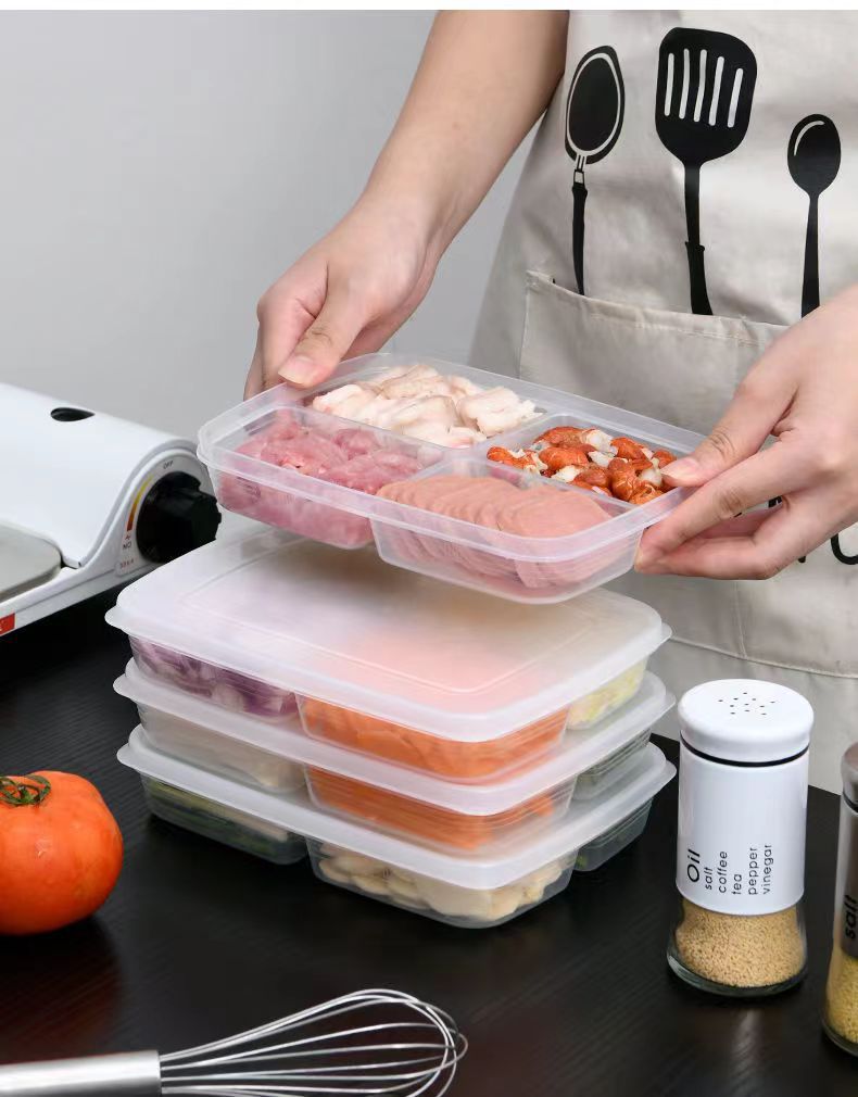 La Caja de almacenamiento del refrigerador se divide en cajas frescas de comida, alimentos sellados de grado alimenticio, carne congelada de cuatro puntos, cebolla, jengibre, ajo y verduras refrigeradas.