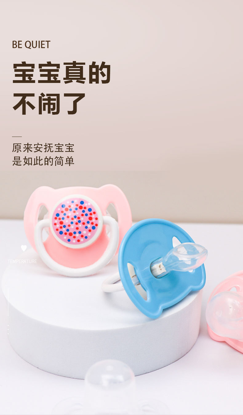 Los fabricantes venden directamente para apaciguar a los bebés recién nacidos con chupete para dormir, silicona súper suave para imitar la leche materna para evitar flatulencia y persuadir a los bebés a dormir.