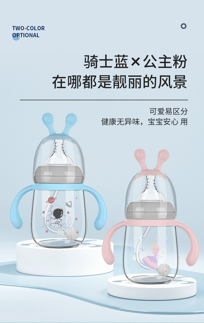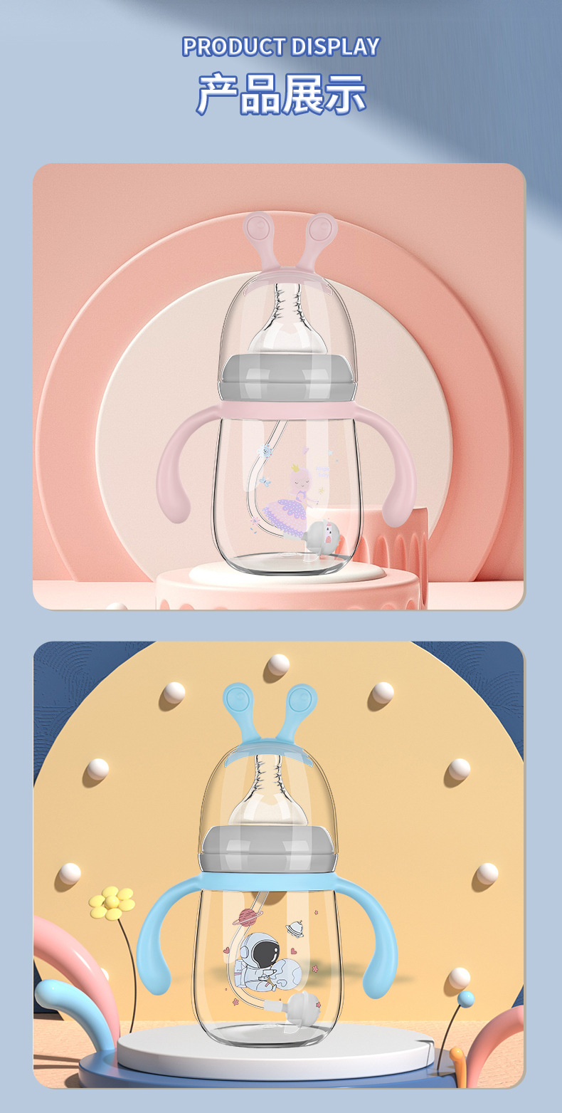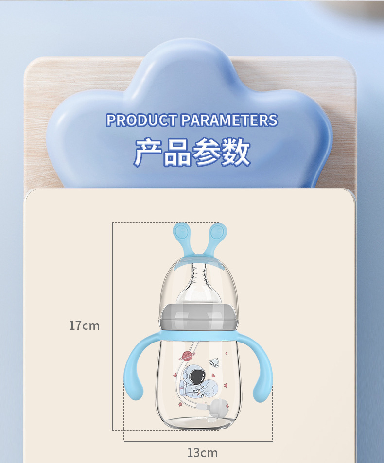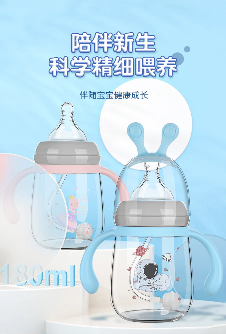 Biberón creativo de dibujos animados 180ml anti - caída, anti - asfixia y anti - alta temperatura biberón de plástico simulado artefacto de destete de chupete de silicona