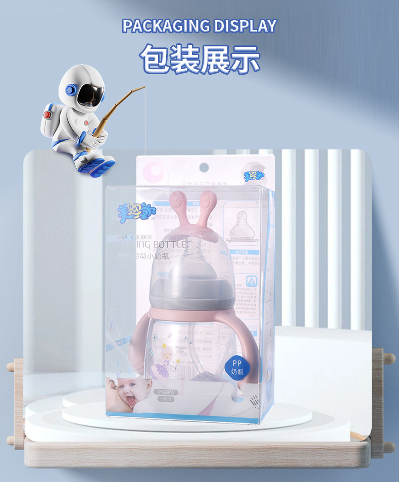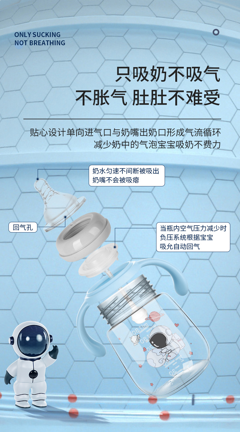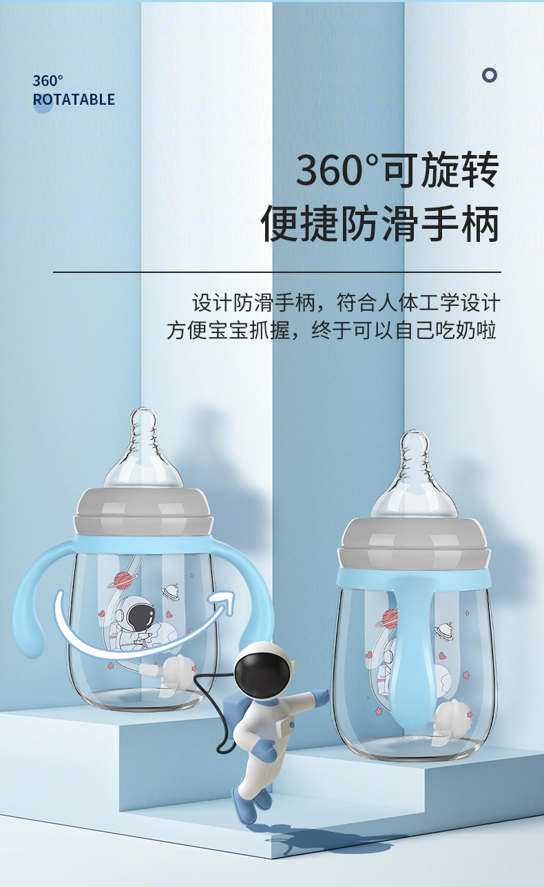 Biberón creativo de dibujos animados 180ml anti - caída, anti - asfixia y anti - alta temperatura biberón de plástico simulado artefacto de destete de chupete de silicona