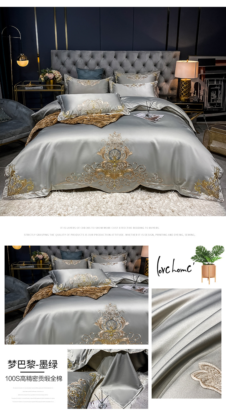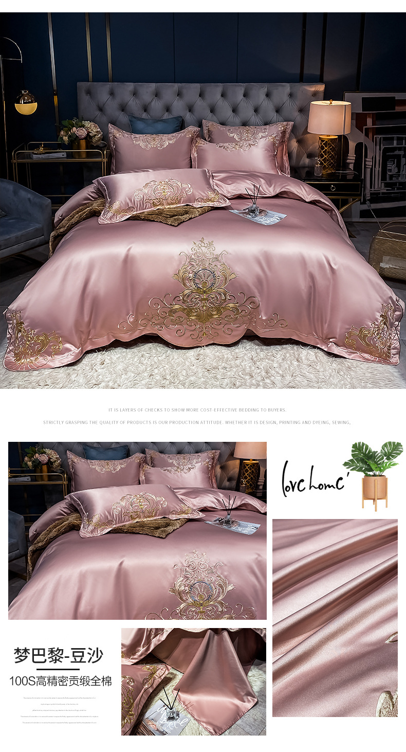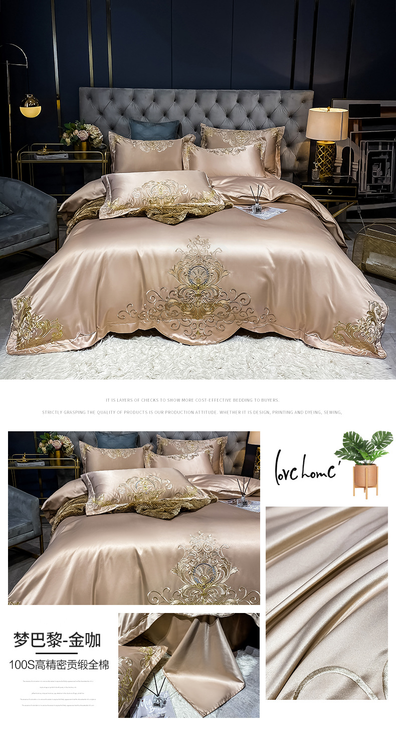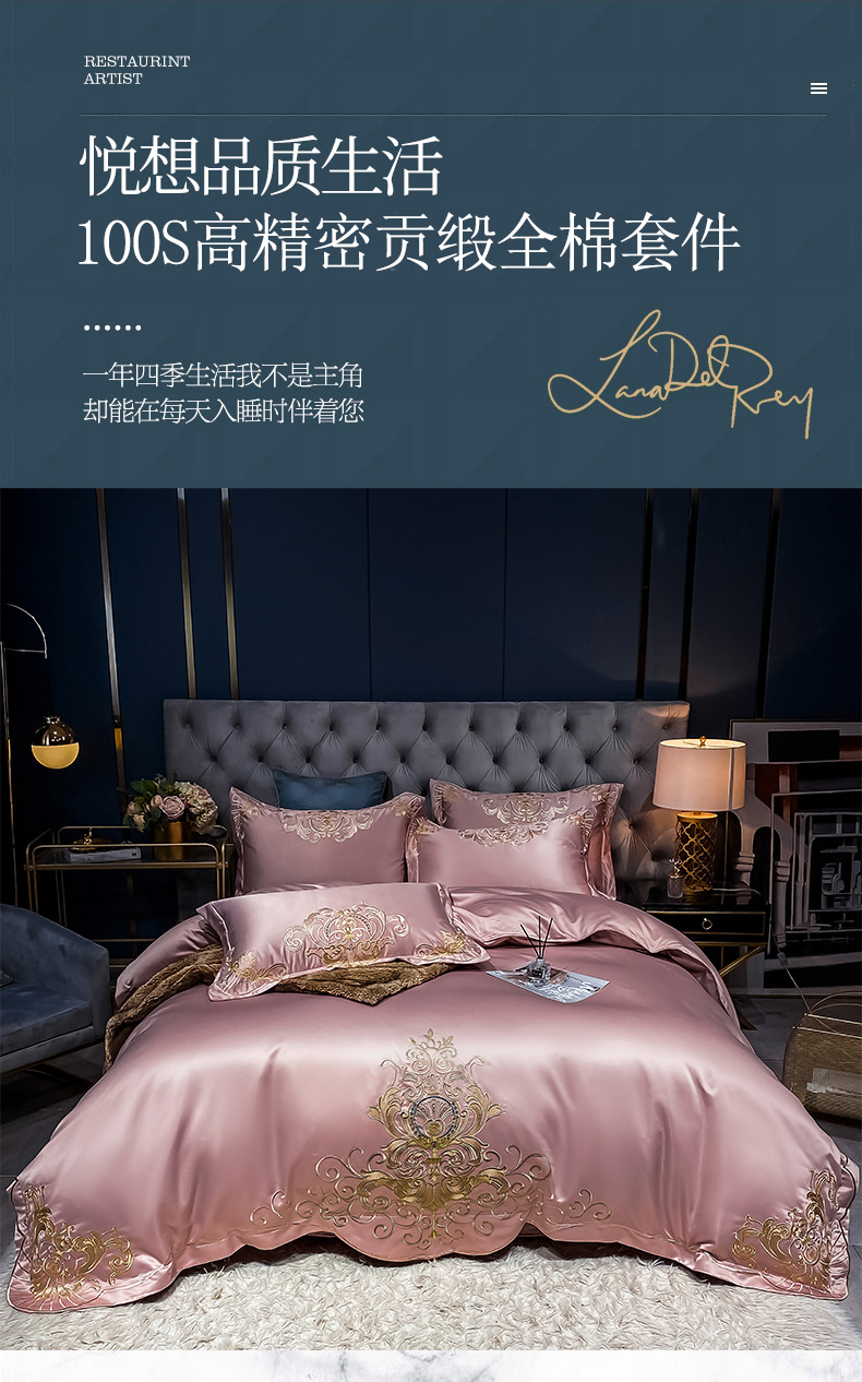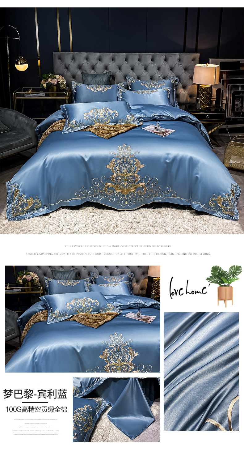 Cuatro juegos de 100 sábanas de algodón puro de 100 piezas de lujo ligero europeo en la antigua carretera, ropa de cama de alta gama en verano