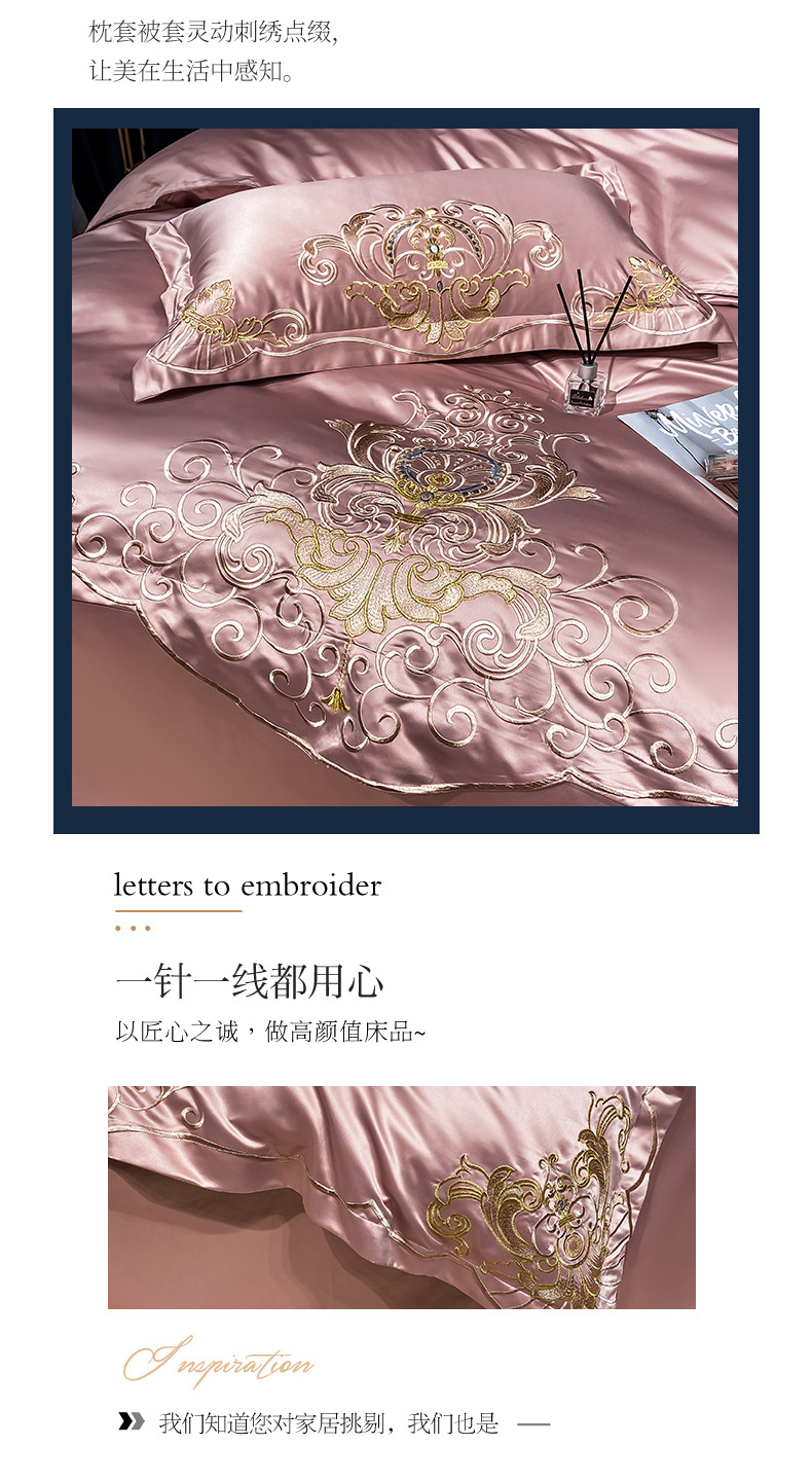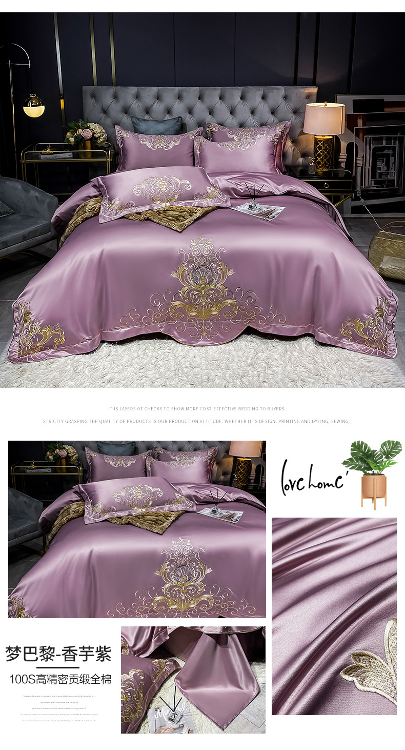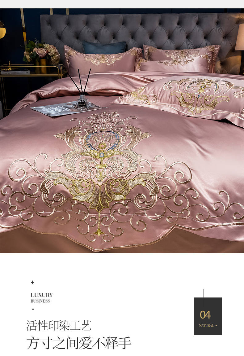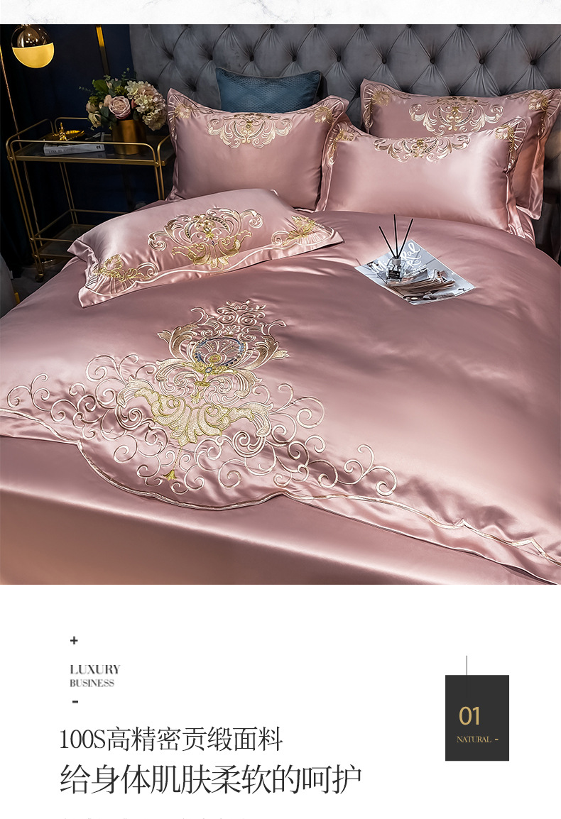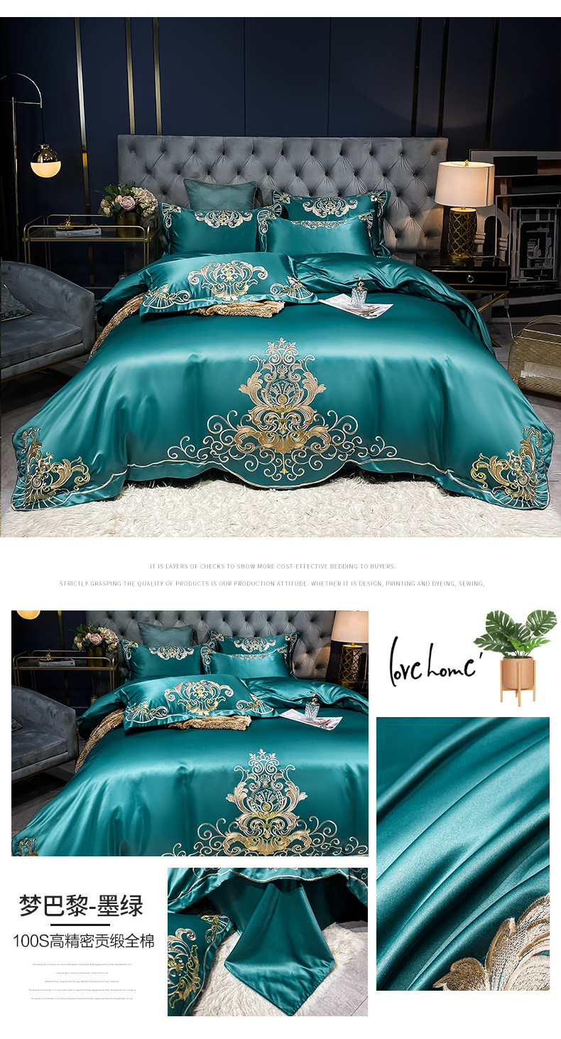 Cuatro juegos de 100 sábanas de algodón puro de 100 piezas de lujo ligero europeo en la antigua carretera, ropa de cama de alta gama en verano
