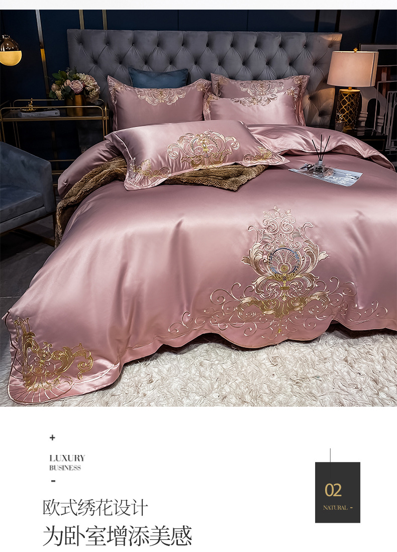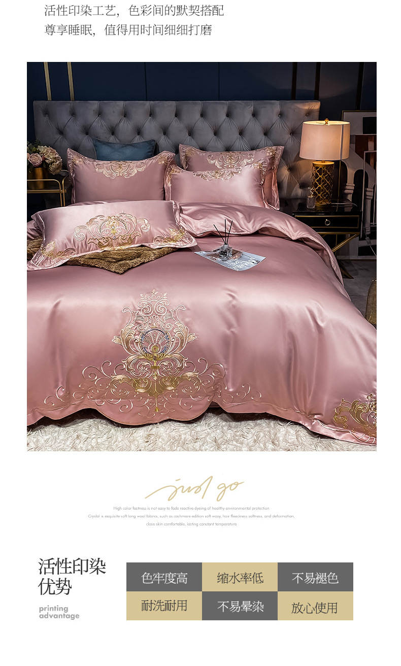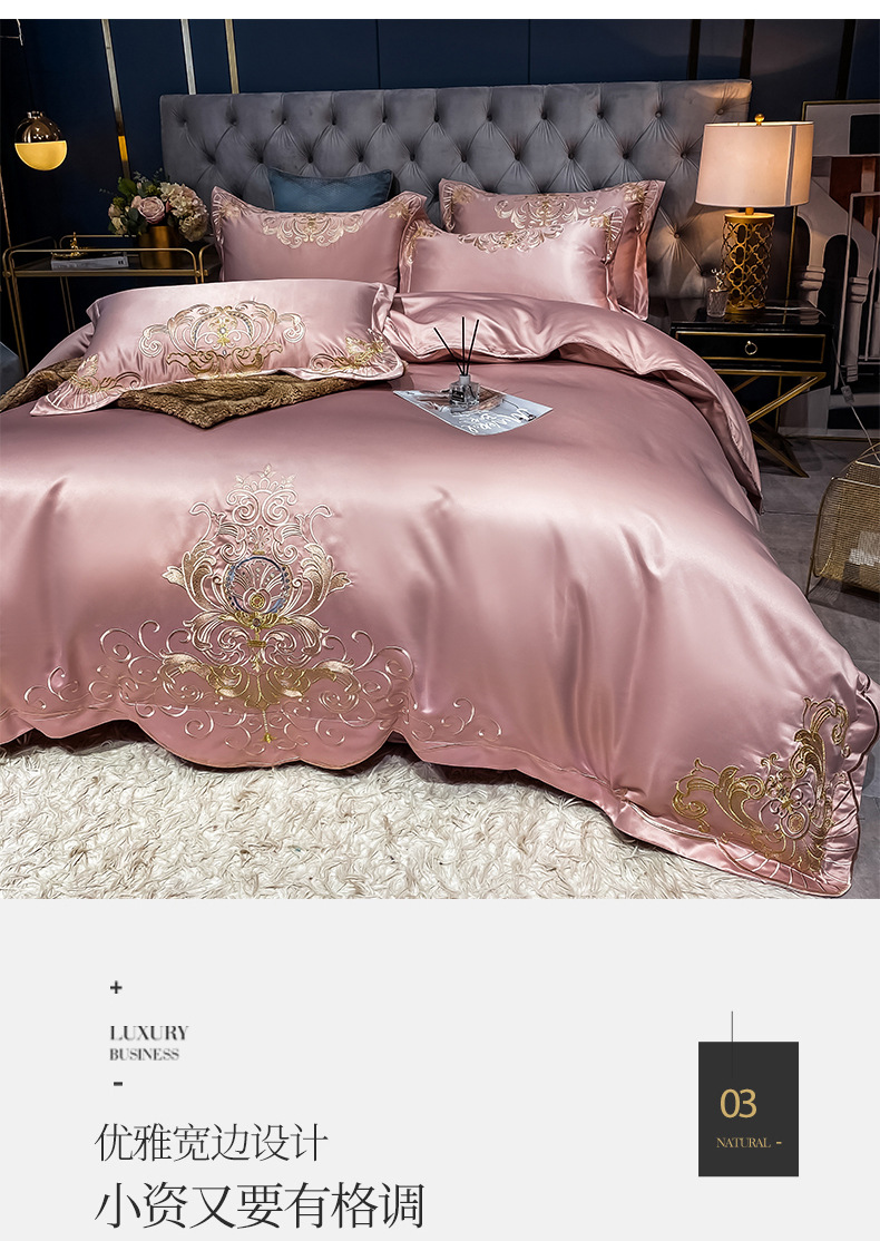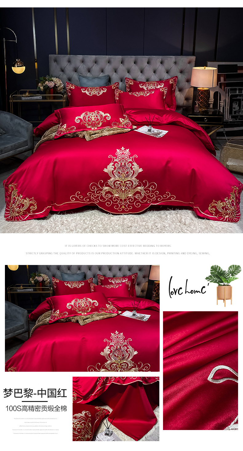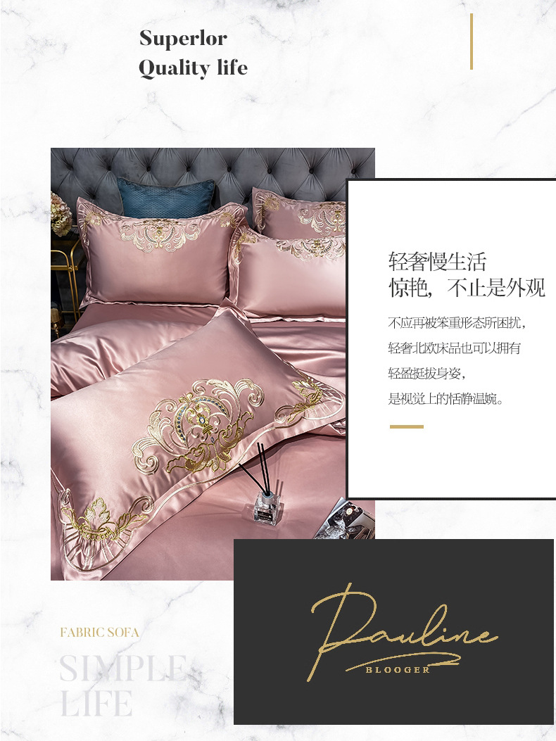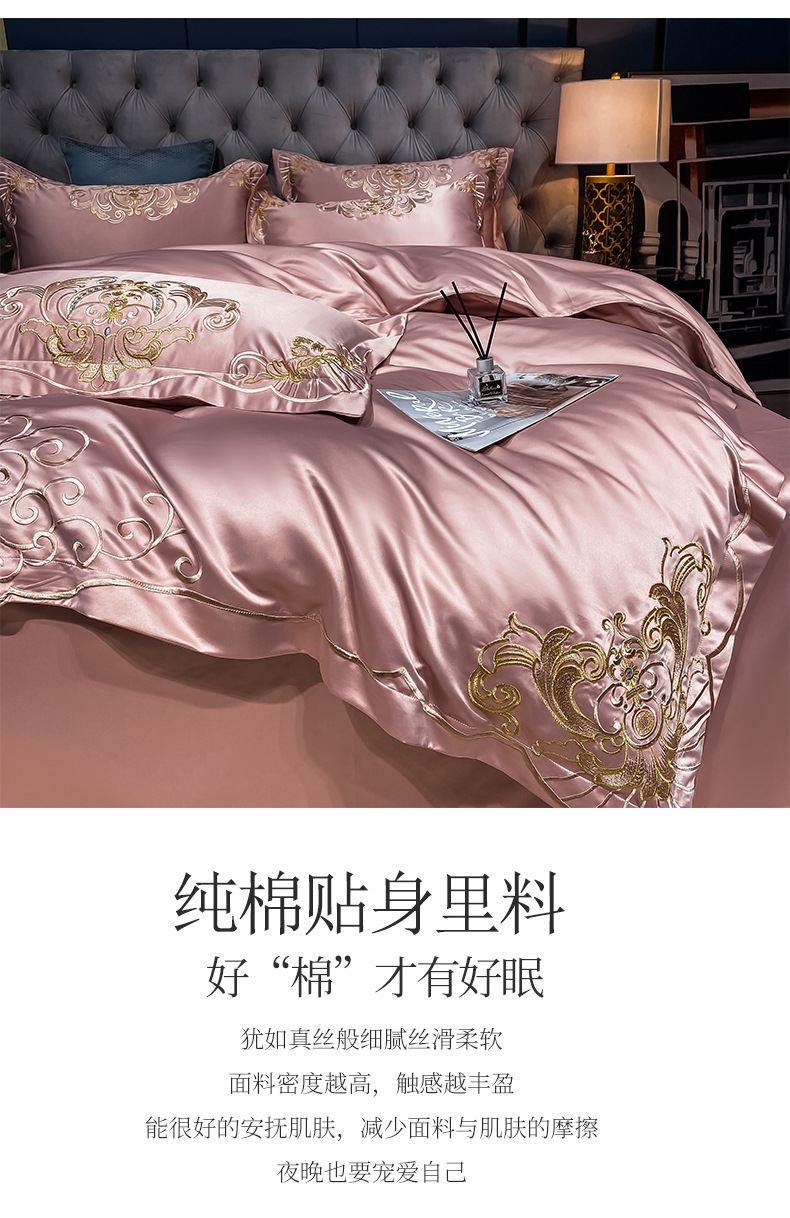 Cuatro juegos de 100 sábanas de algodón puro de 100 piezas de lujo ligero europeo en la antigua carretera, ropa de cama de alta gama en verano