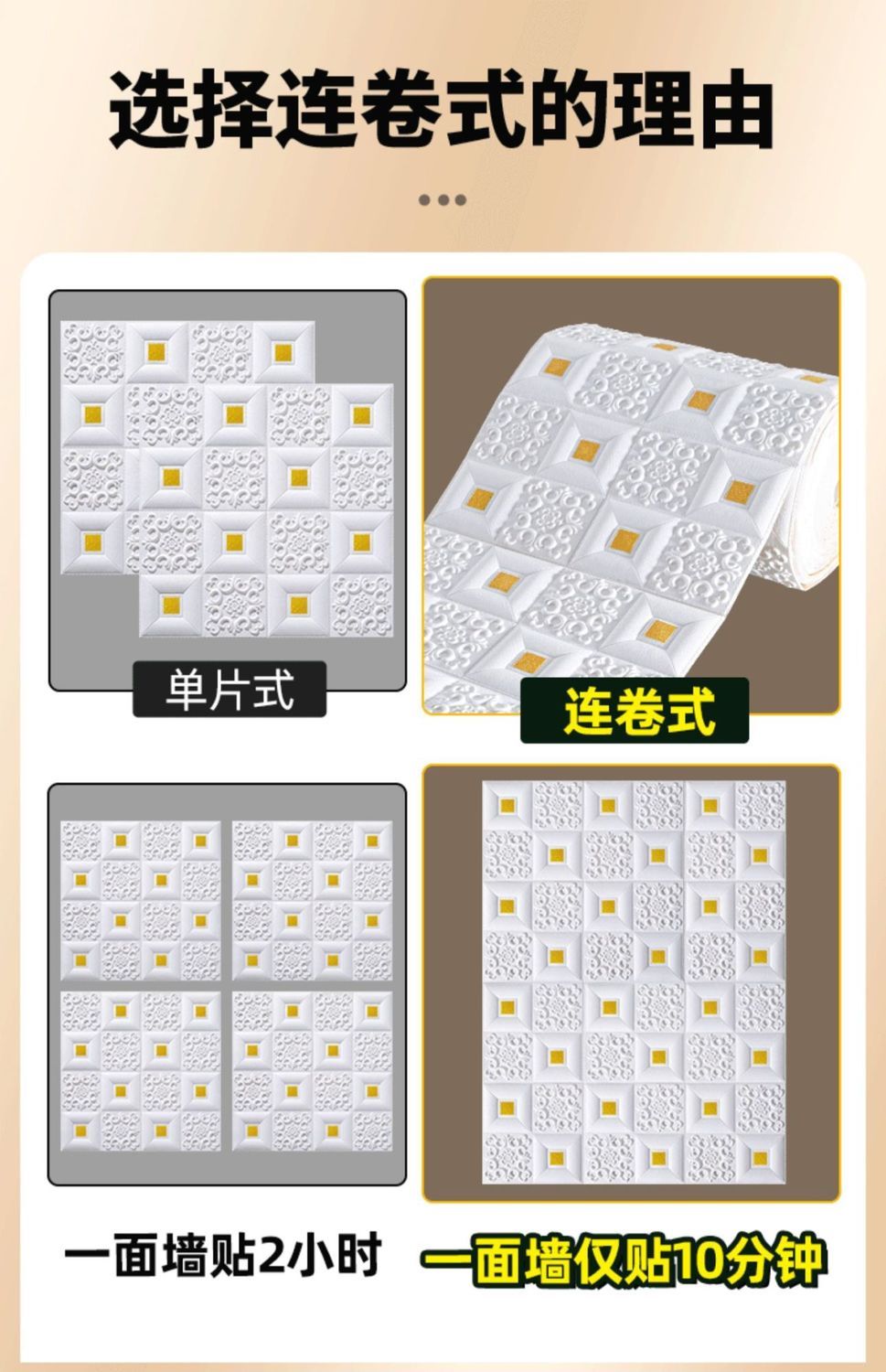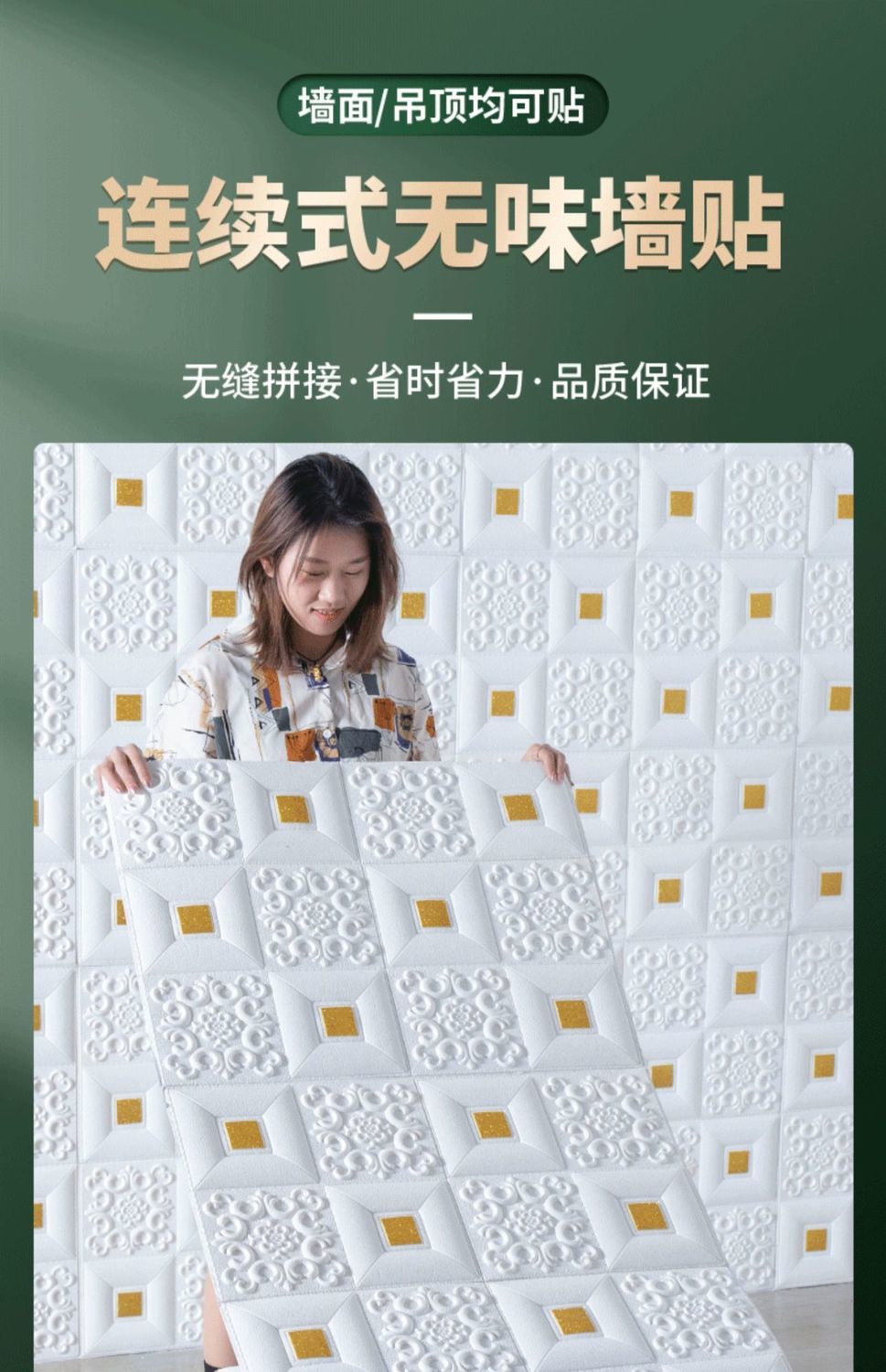Rollo continuo de papel pintado Autoadhesivo pared tridimensional 3D pegatinas dormitorio cálido papel pintado impermeable y a prueba de humedad pegatinas decorativas en el techo del techo