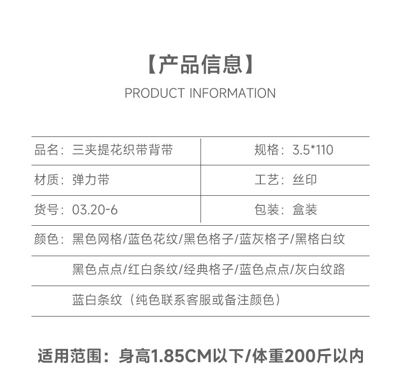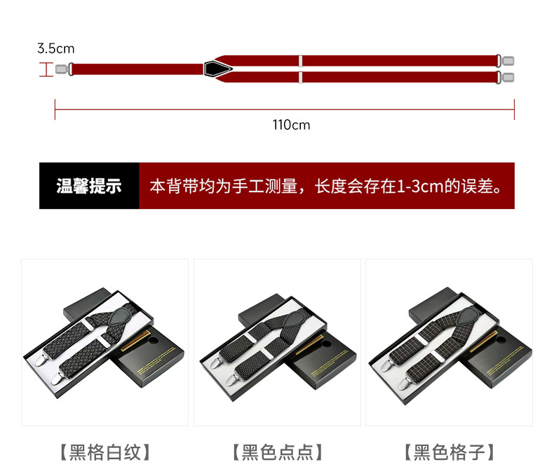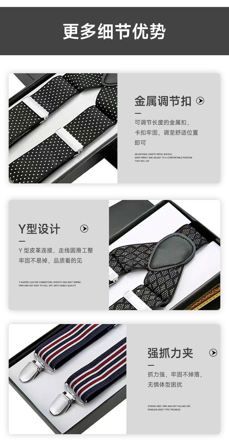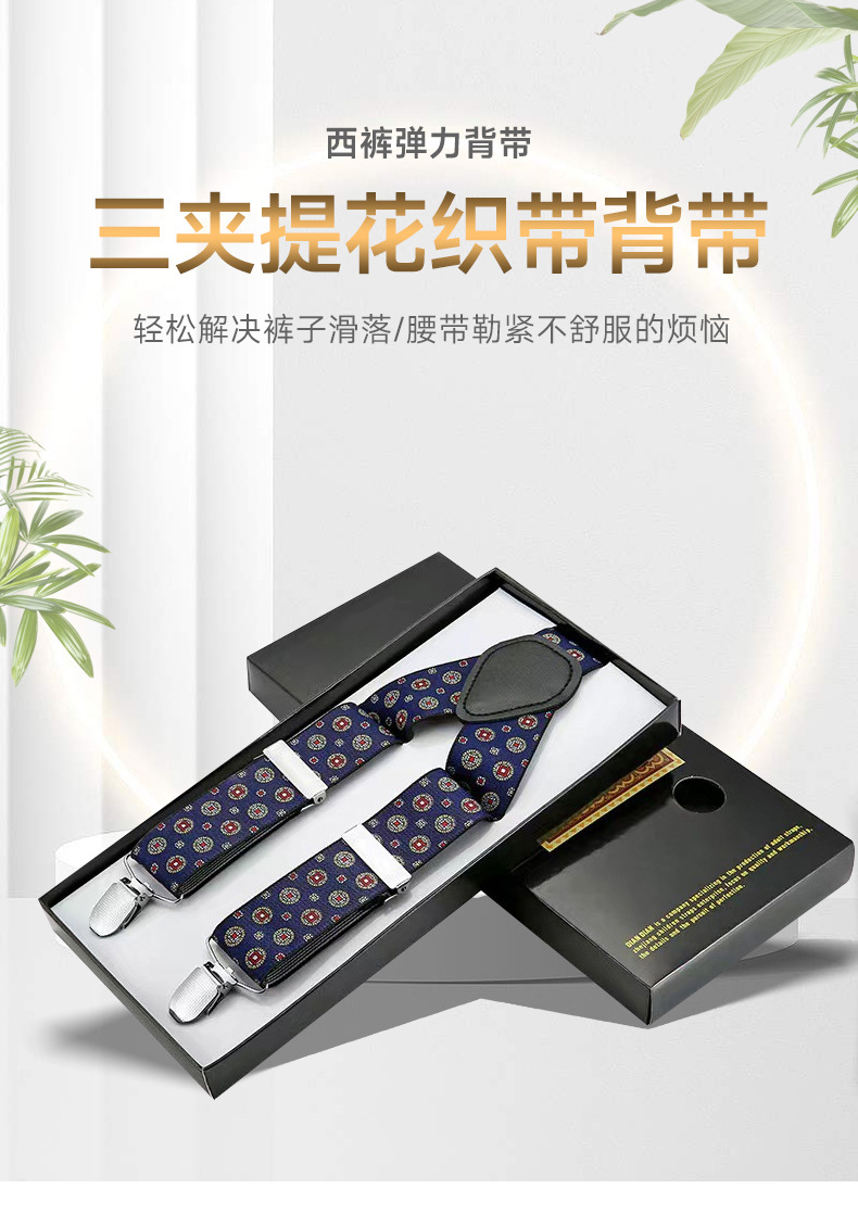 Clip de tirantes transfronterizos 3.5 tirantes elásticos para hombres tirantes elásticos para adultos tirantes para hombres con tres tirantes Jacquard