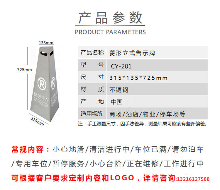 El letrero de advertencia publicitaria de suministros hoteleros de zhenghao indica que está prohibido estacionar y estacionar conos de acero inoxidable.