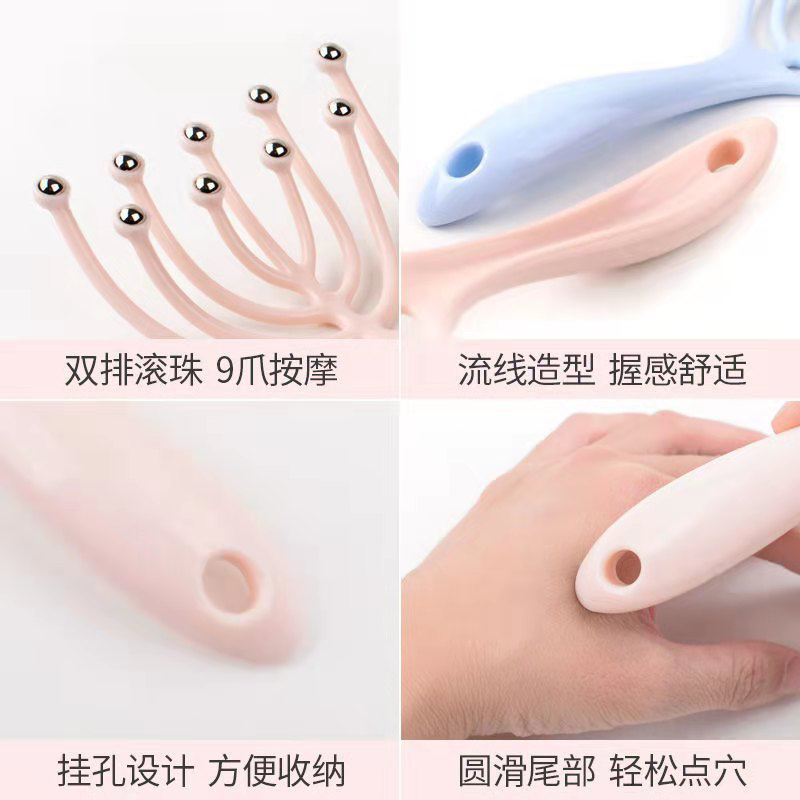 Masaje de cabeza de nueve agarres, masajeador de cabeza de ocho patas, masaje de bolas de acero de bolas de ocho patas