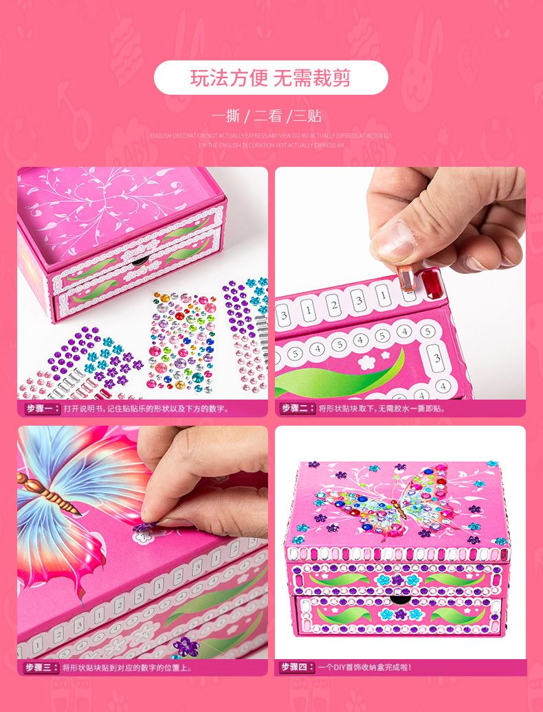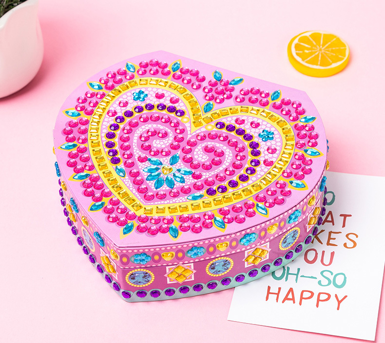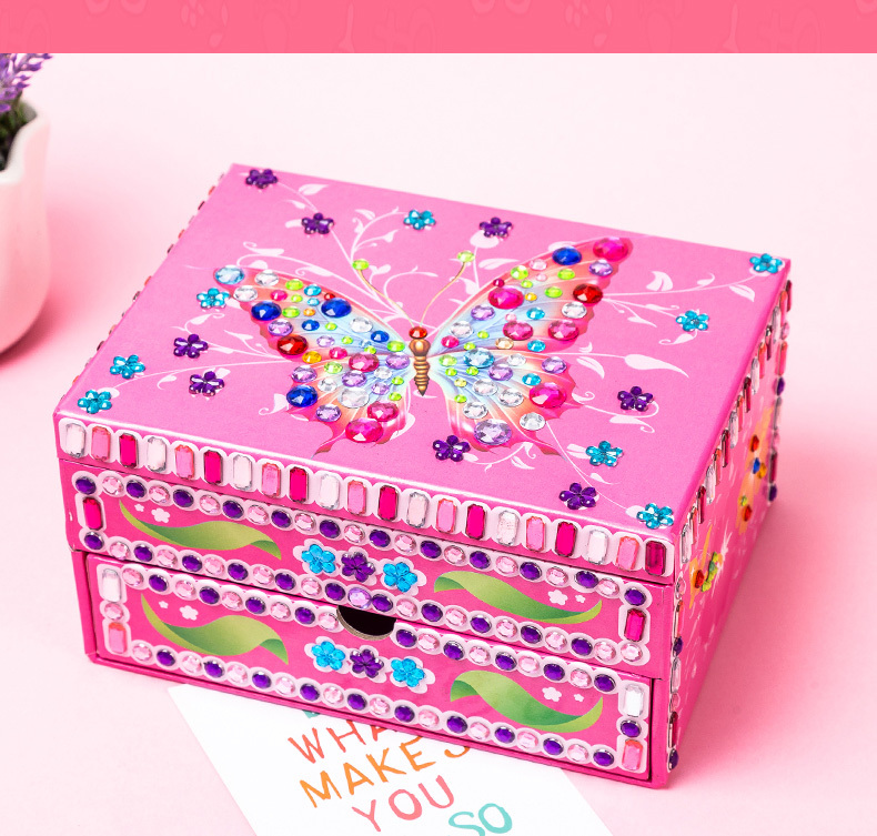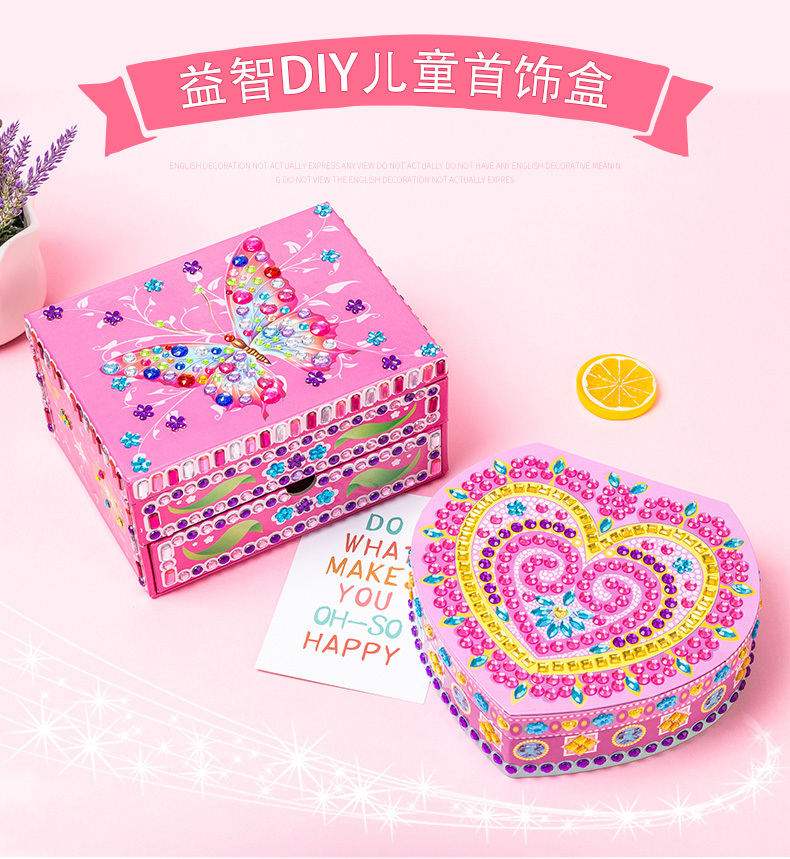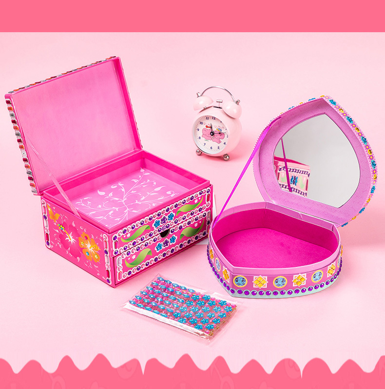 Los niños pegan diamantes para recibir cajas de piedras preciosas cajas de joyas DIY hechas a mano cajas de joyas pegadas con diamantes para hacer materiales paquetes de regalos de cumpleaños