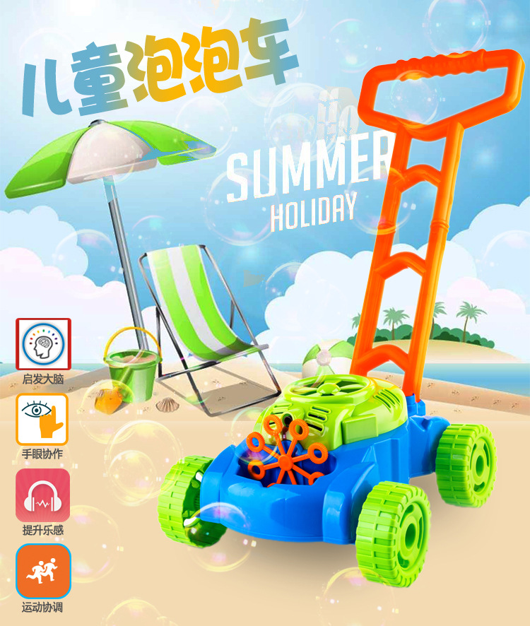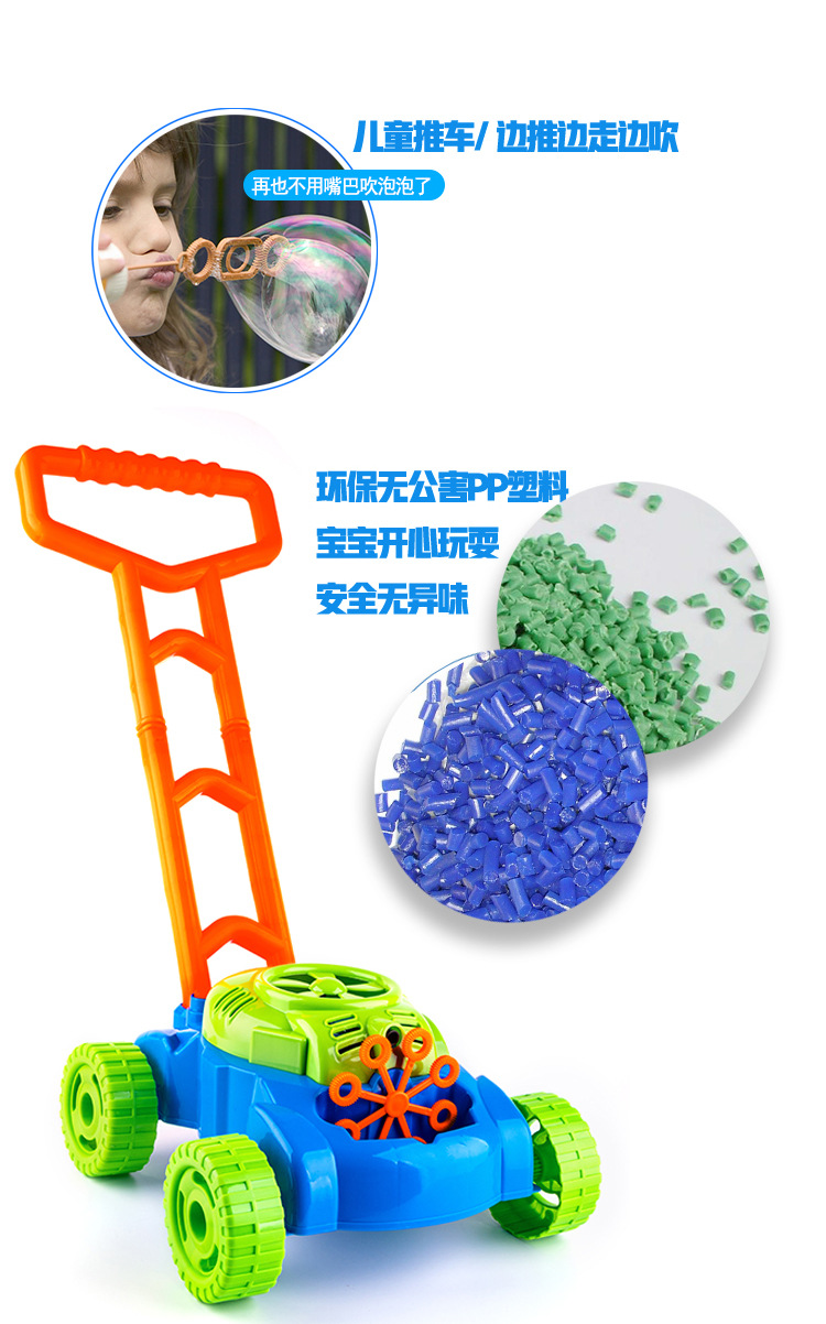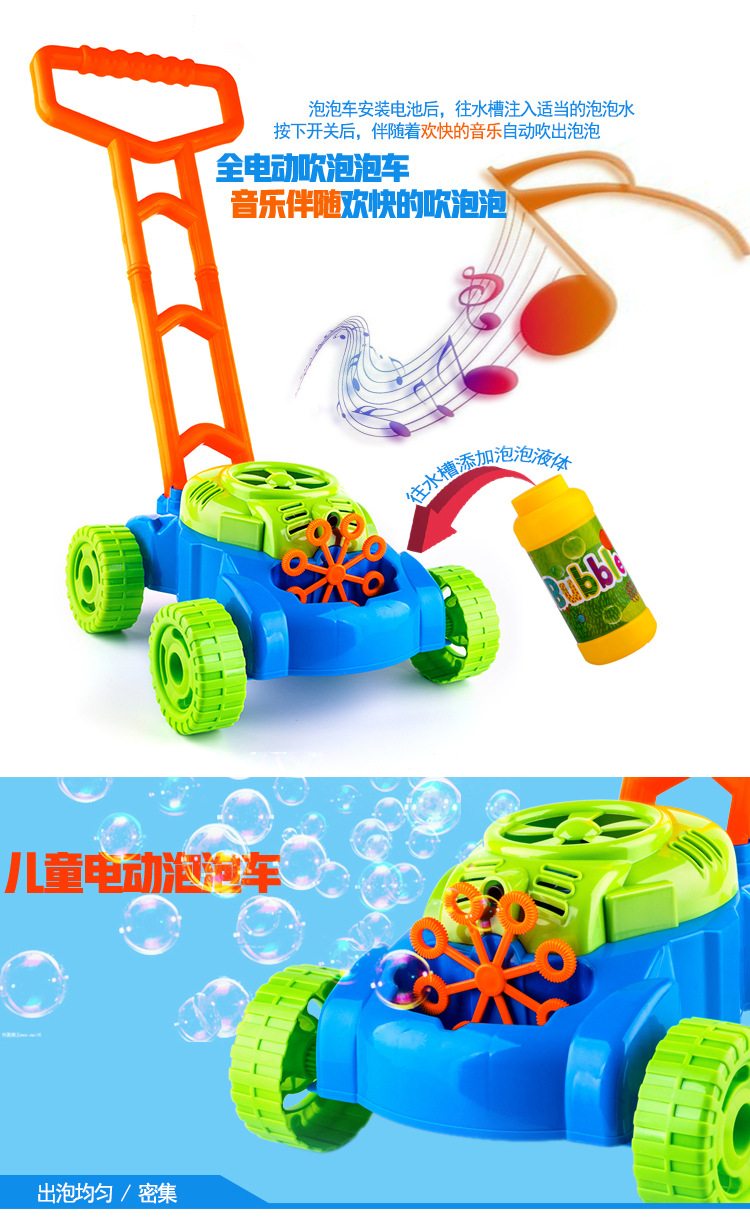 Amazon transfronterizo calabaza eléctrica empuja el coche de burbujas a mano, los niños aprenden a caminar, los terneros soplan burbujas, los fabricantes de juguetes venden directamente