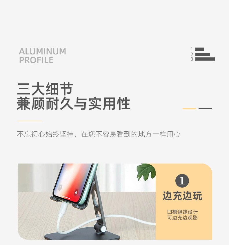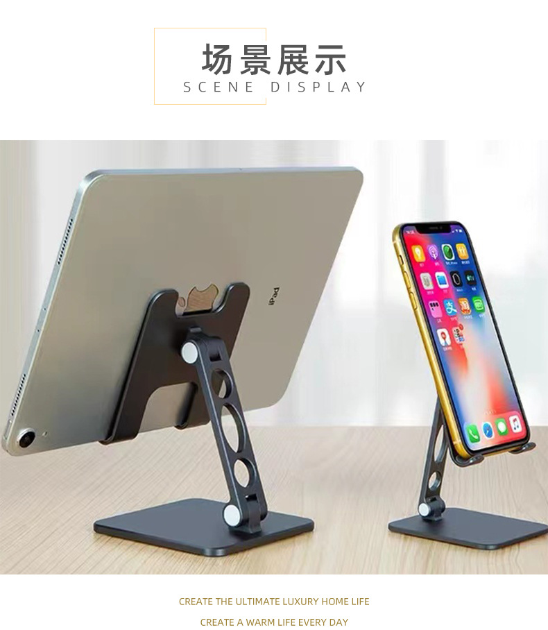 El fabricante suministra directamente soporte de teléfono plegable plano de aleación de aluminio, soporte de escritorio para teléfonos móviles multifuncionales en vivo para perezosos.