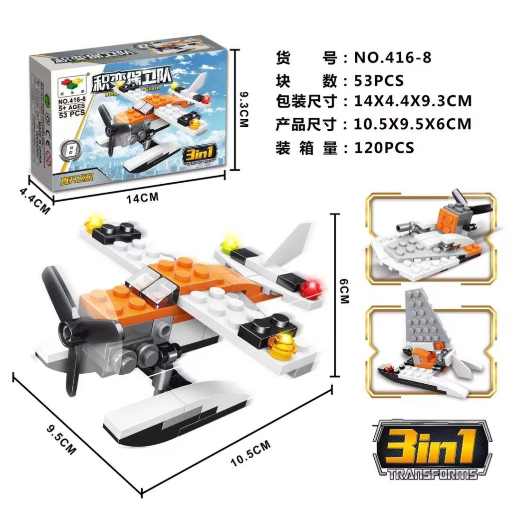 Bricolaje rompecabezas infantil montaje de juguetes modelo de plástico tres cambios promoción de bloques de construcción regalos