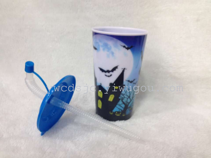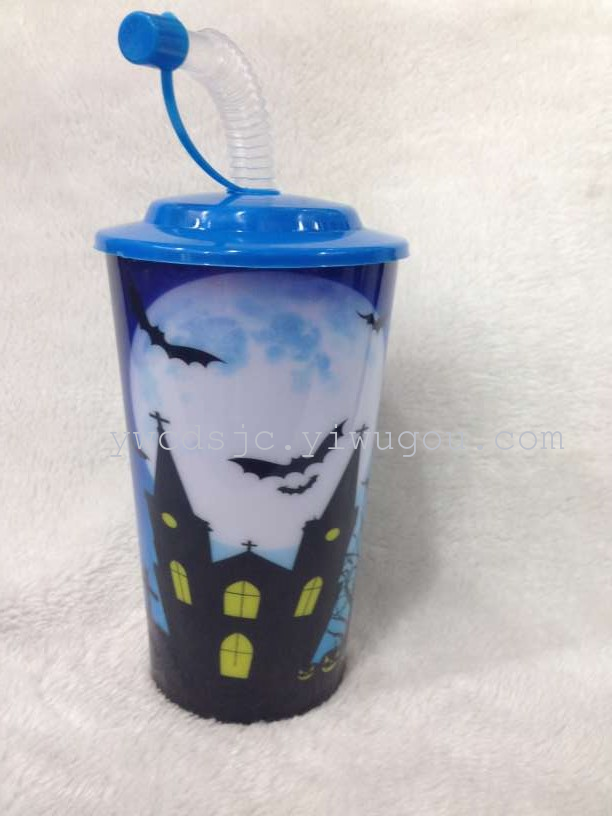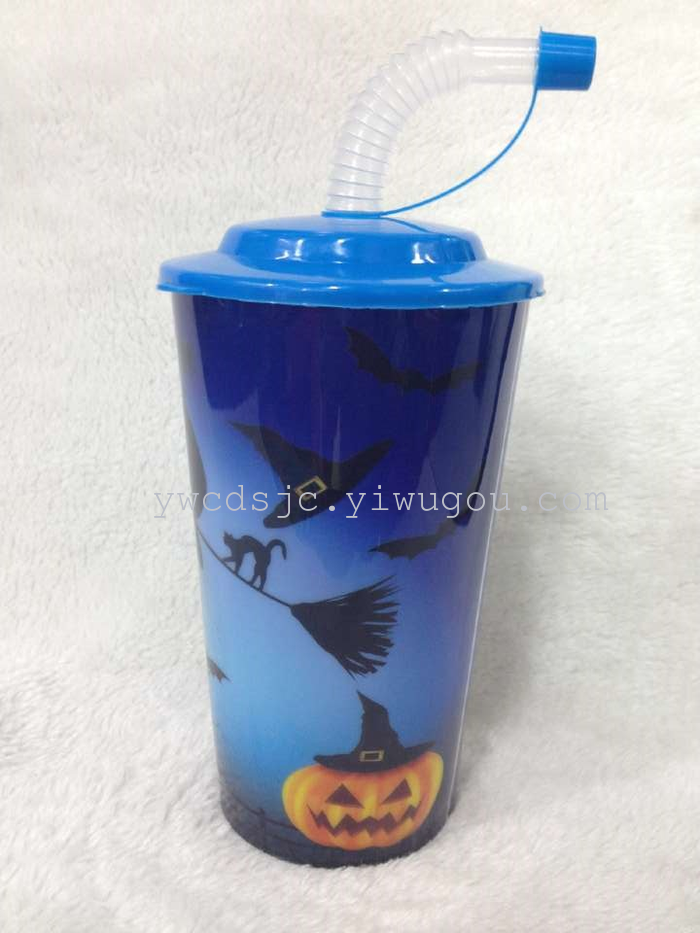 Creativo y lindo vaso de pajitas de plástico, vaso de agua portátil para estudiantes infantiles, vaso de necesidades diarias de Halloween
