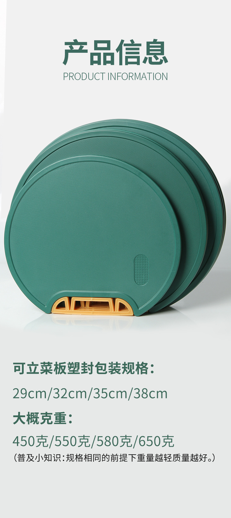 规格:最大位置直径 29cm/31cm/32cm/35cm/37cmB/37cmH/40cm.厚度6.3-7.8mm,对应大概克重270克/300克/350克/410克/430克/490克/660克。 ❤️ 2023可定制:1,浅绿色系列,上面价格基础上加0.2-0.3元。相对墨绿色划痕不明显。2,小麦秸秆29cm,31cm加0.3元;32cm加0.4元;35cm-37cm加0.5元,40cm加0.6元。没划痕。 装箱数:29CM/31CM/32CM 45片/箱, 箱规32CM*29CM*35.5CM; 35CM 40片/箱, 箱规:35.5CM*32CM*32.5CM; 37CM 30片/箱, 箱规:38CM*34.5CM*27.5CM 40CM 30片/箱 箱规:41CM*34CM*36CM 长方形可立菜板:大号39CM*29CM*7.5MM 克重595克 箱规:41CM*34CM*36CM,装箱数45片/箱。 中号:35cm*27cm*7.5mm。克重:510克, 箱规:35.5CM*32CM*32.5CM 30片/箱 小号:31.5cm*25.6cm*6.5mm,克重:360克, 箱规32CM*29CM*35.5CM;40片/箱