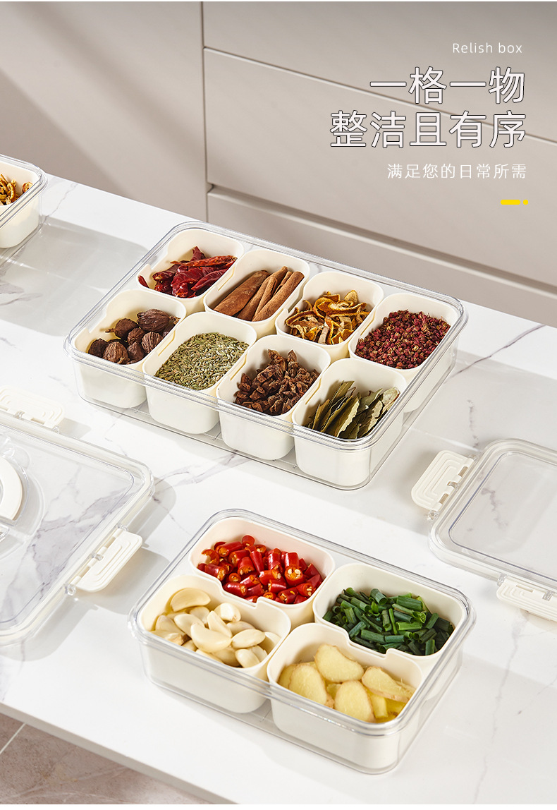 Caja de almacenamiento de especias bolan cocina doméstica caja de almacenamiento de latas selladas de condimentos caja de almacenamiento de refrigeradores de gran capacidad