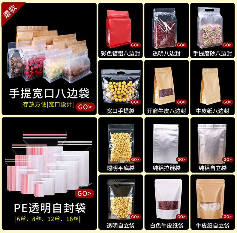 Bolsa de embalaje de alimentos sellada transparente de ocho lados autoproclamada bolsa sellada de arena molida autoproclamada bolsa de cuero de vaca seca de alimentos de ocio generales
