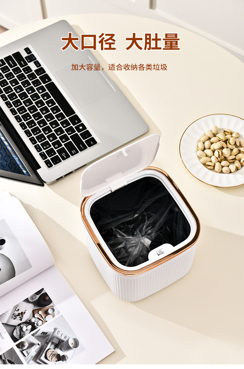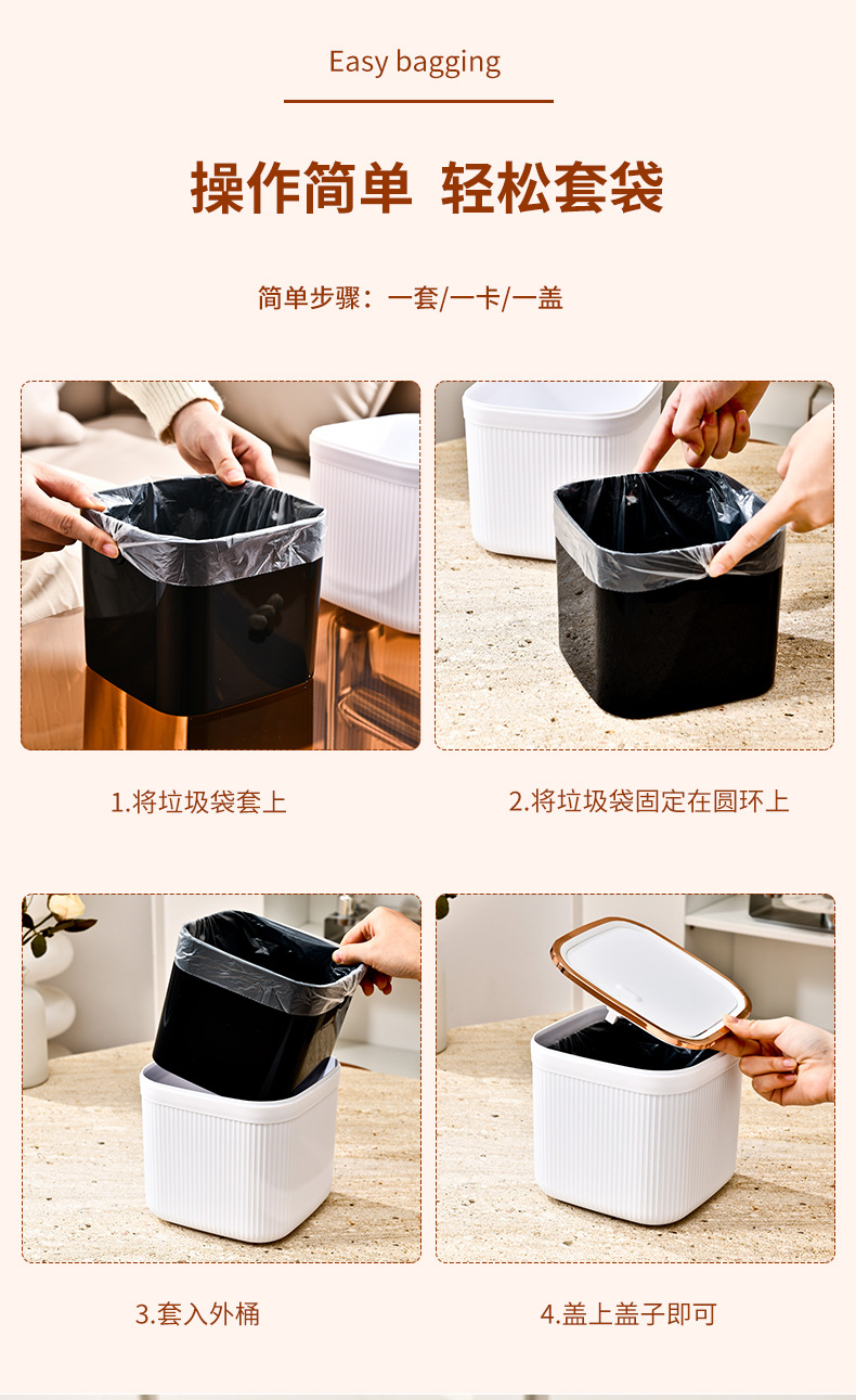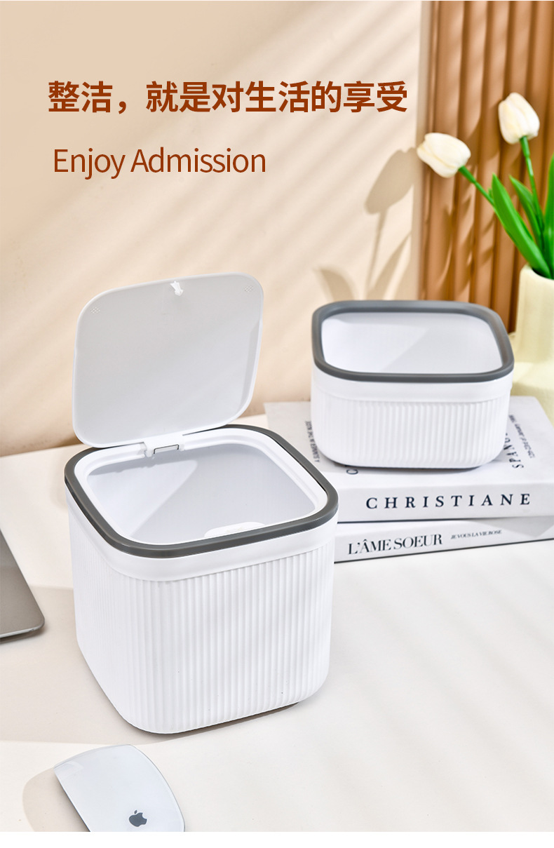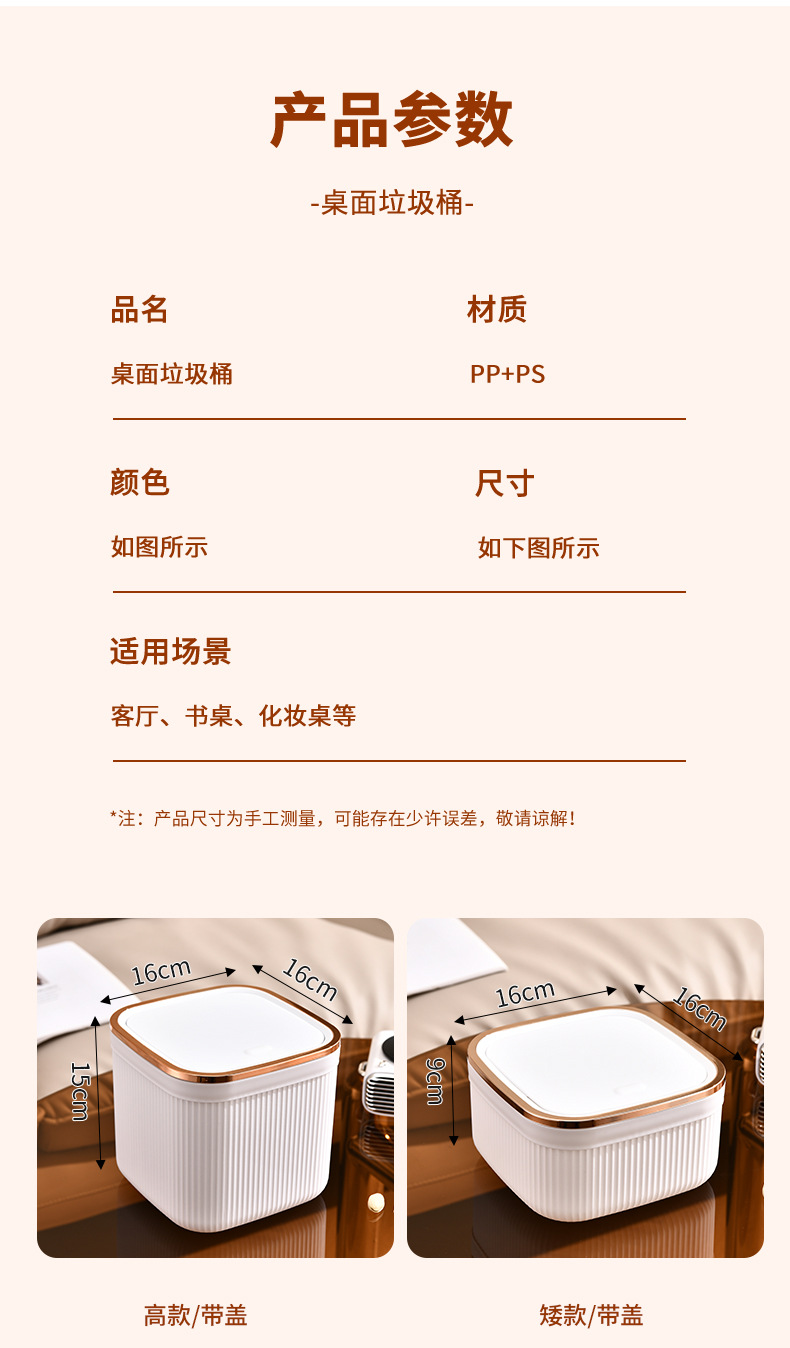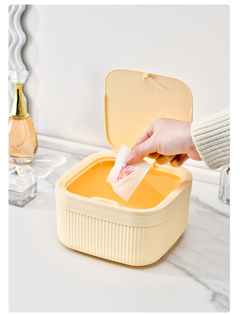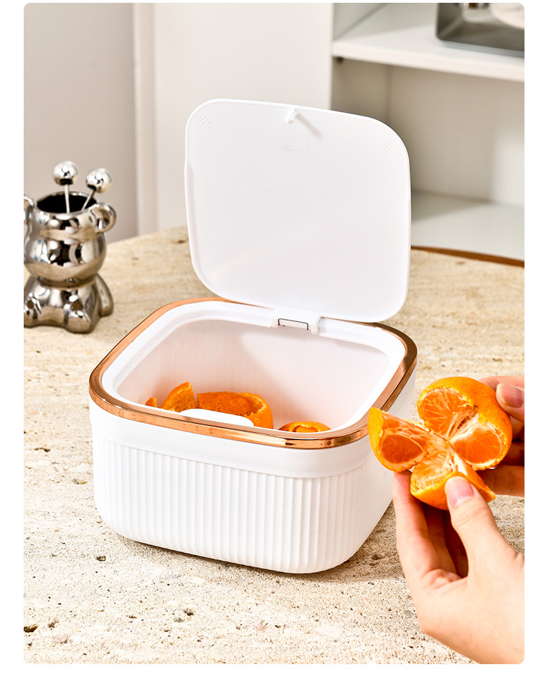 El bote de basura de la Mesa de presión tiene una tapa para cubrir la Caja de almacenamiento de escombros del escritorio de la Sala de estar para facilitar la pegatina de la papelera de piel de fruta.