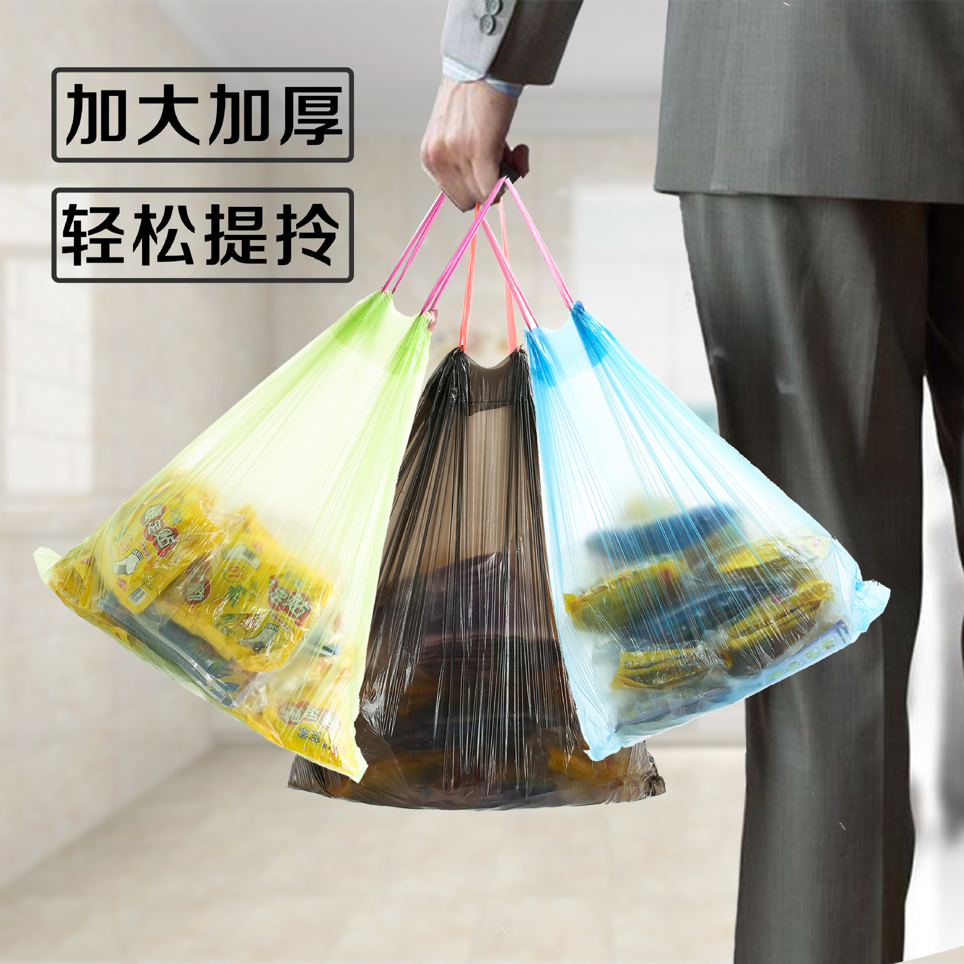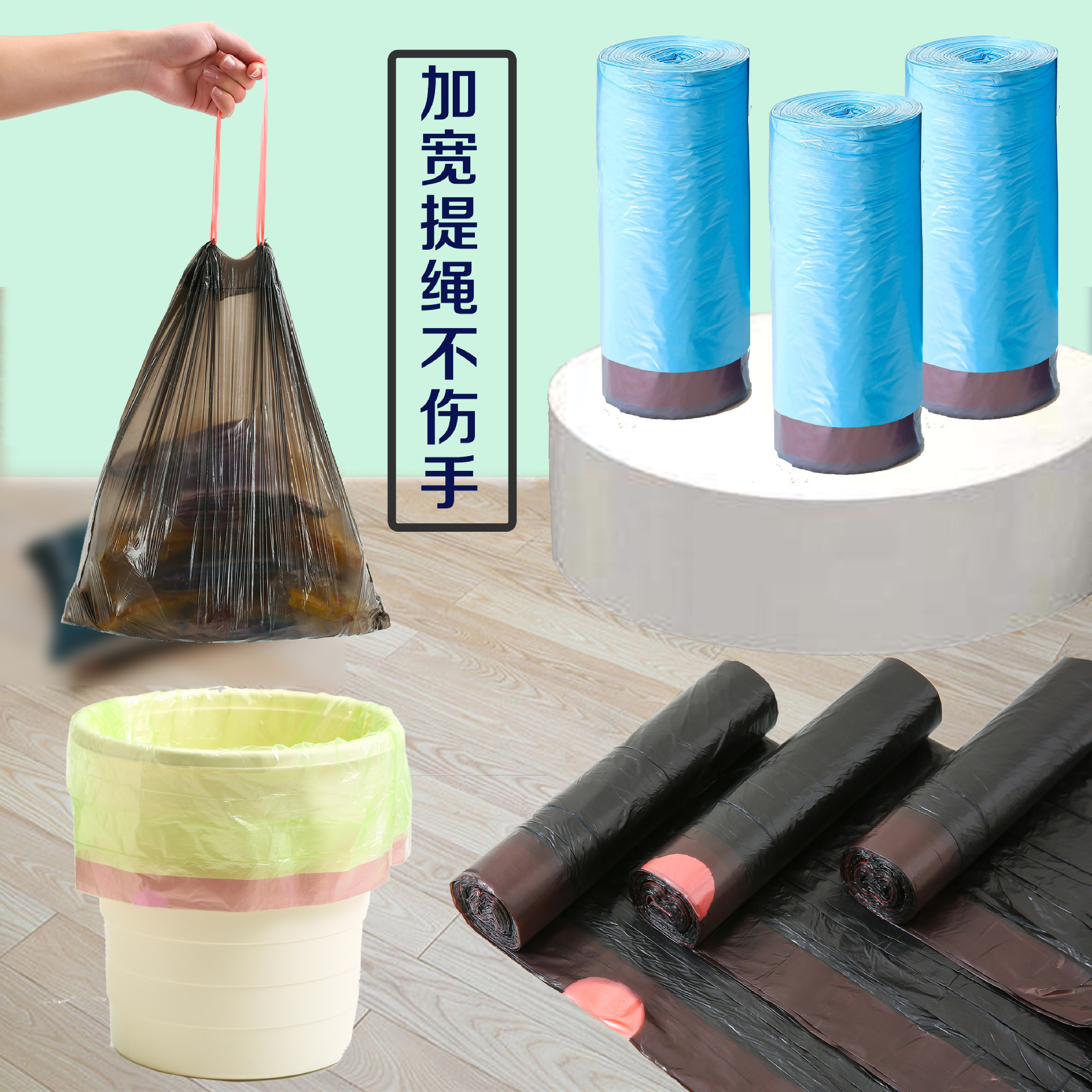 Bolsas de basura tipo cuerda, cocinas domésticas, bolsas de basura de color engrosadas, bolsas de plástico portátiles, un gran número de fabricantes mayoristas