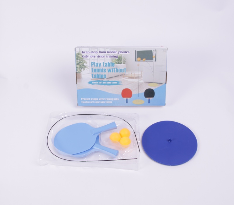 【名称】:弹力软轴乒乓球训练器 【规格】球拍*2? 乒乓球*4? 底盘*1? 软轴*1? 空心管*1 【尺寸】乒乓球拍:24*14.3cm,乒乓球直径4cm,固定盘直径20cm 吸盘直径8cm,软轴80cm,固定管子20cm 【材质】乒乓球拍、固定盘:PP ; 乒乓球、吸盘:PVC;定子,软轴:FRP 【介绍】 为什么大家喜爱乒乓球?? 呢?因为比其他运动而言相对安全,尤其是身心没有发育成熟的少年儿童,同时能够极有效地发展反应、灵敏、协调和操作思维能力!