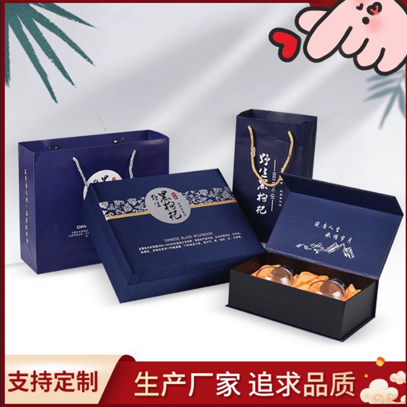 Cajas de regalo personalizadas cajas de embalaje de wolfberry negro, productos de salud, cajas de materiales medicinales, cajas de regalo con solapa cuadrada se pueden personalizar