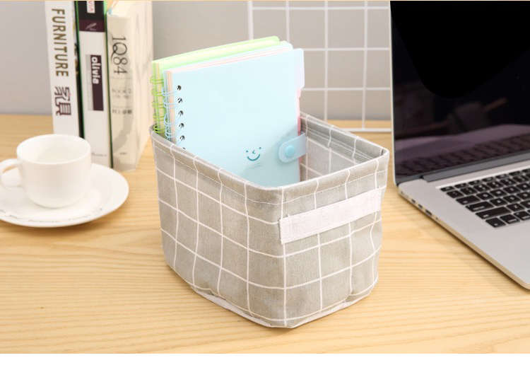 Tela con cesta de almacenamiento de algodón y cáñamo impresa a mano para ordenar los escombros de la mesa, armario de ropa pequeña, cesta de almacenamiento de tela htt