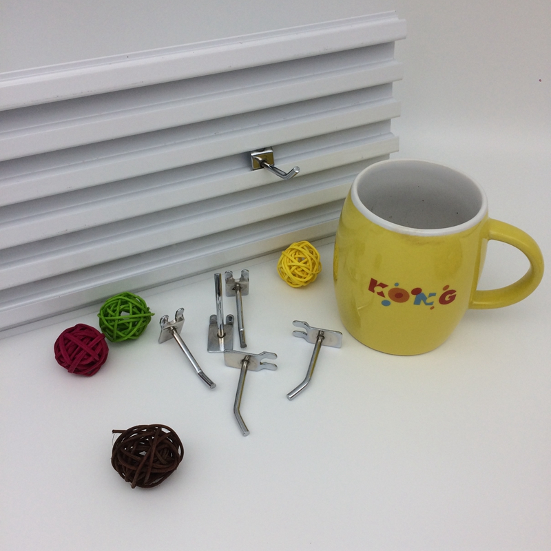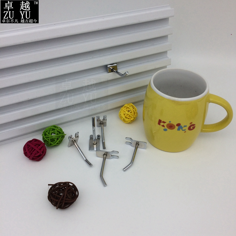 产品名称:铝槽板挂钩 表面工艺:双层电镀 产品尺寸:5-15CM 批发装箱:1000支/箱 适用场所:饰品店 手机配件店 精品店 潮流店铺装修