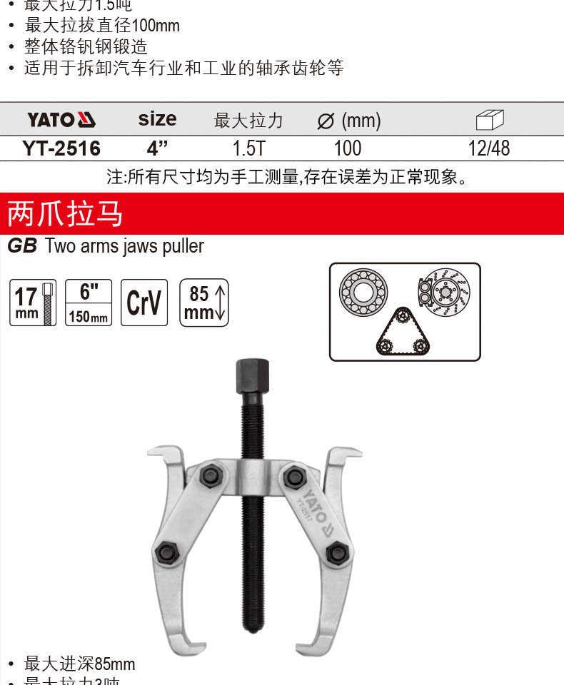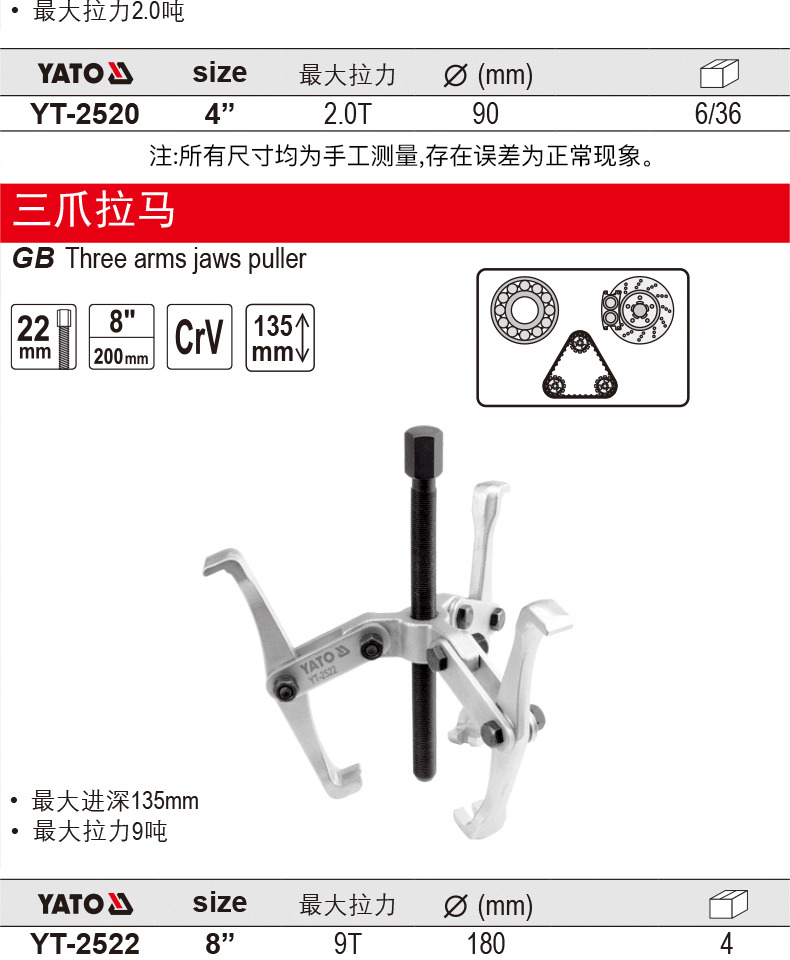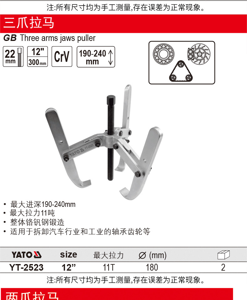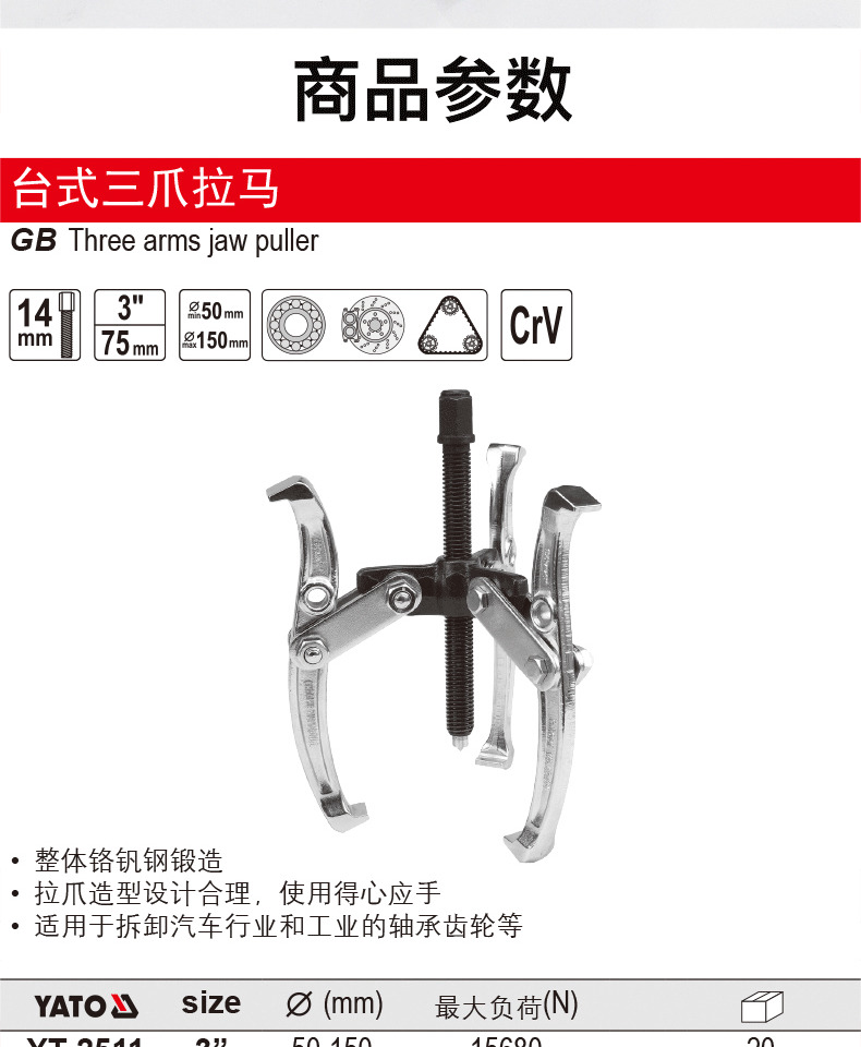 Yato rama industrial de tres garras, dos garras y dos garras puller de ruedas puller de código de soporte puller y extractor de desmontaje