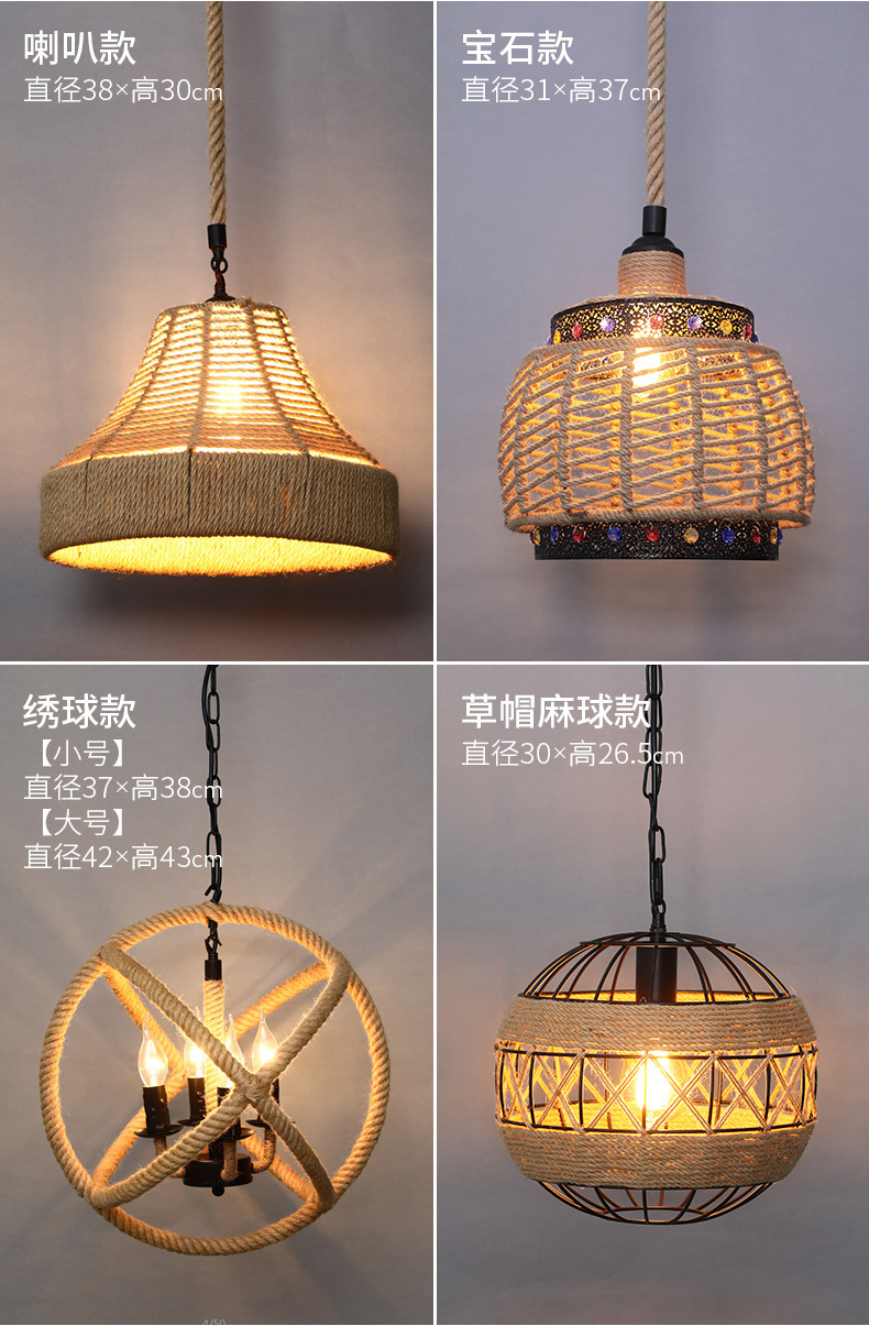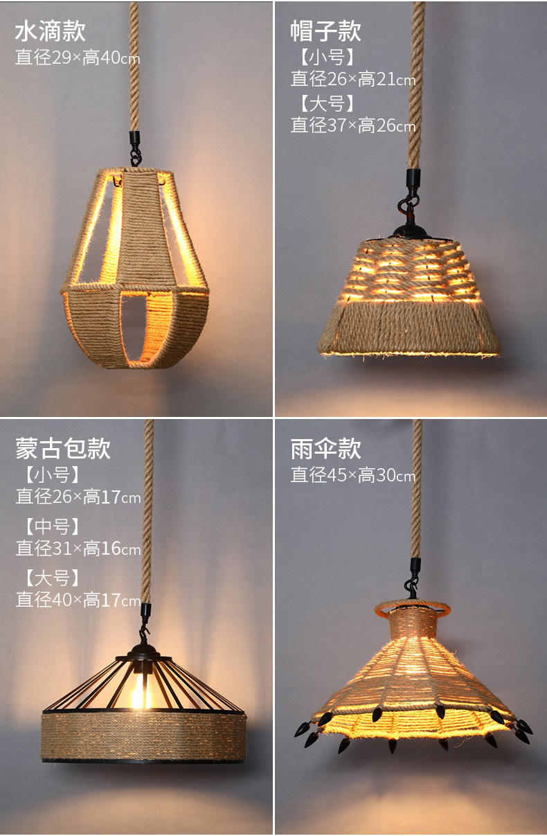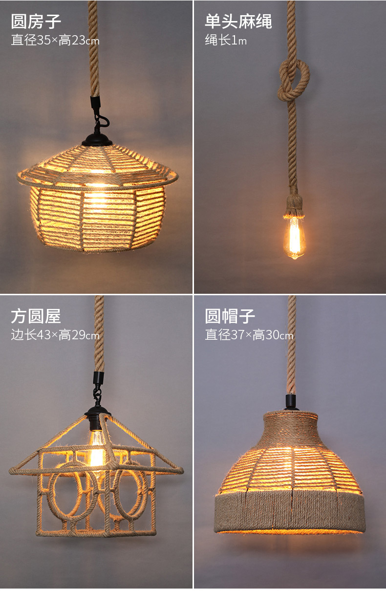Estilo industrial retro lámpara de araña de cuerda de cáñamo barbacoa restaurante restauración creatividad personalidad decoración tienda Roja de la red de lámparas comerciales