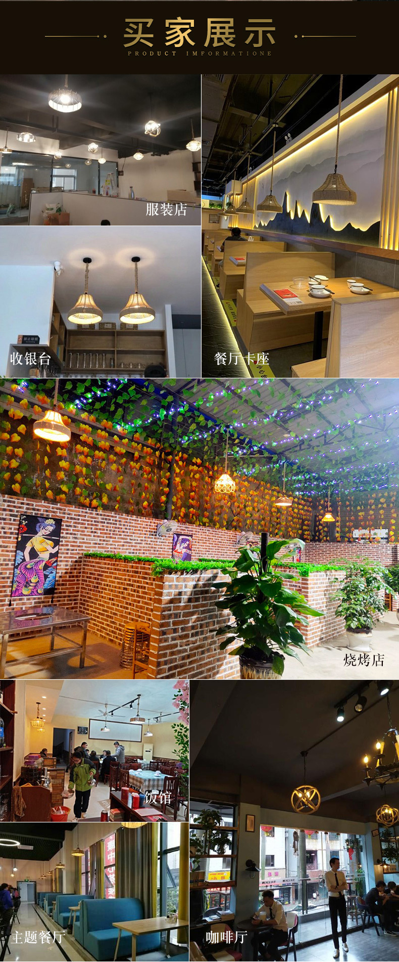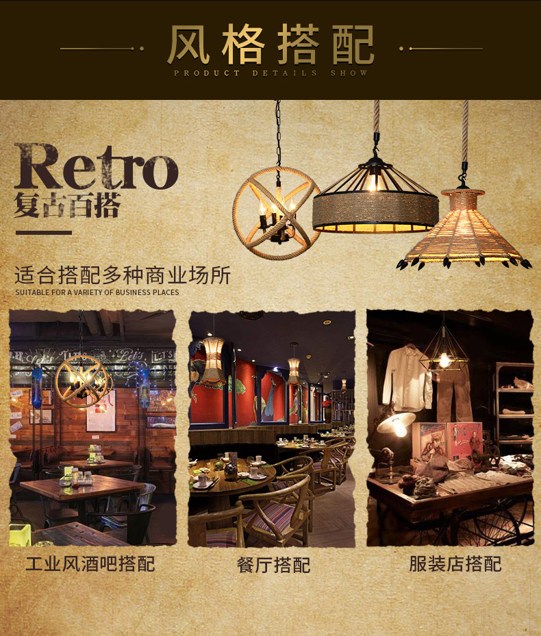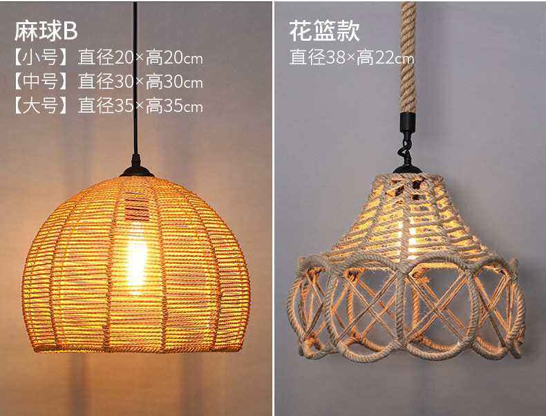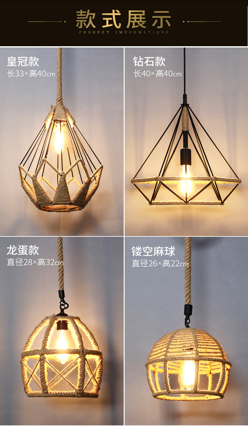 Estilo industrial retro lámpara de araña de cuerda de cáñamo barbacoa restaurante restauración creatividad personalidad decoración tienda Roja de la red de lámparas comerciales