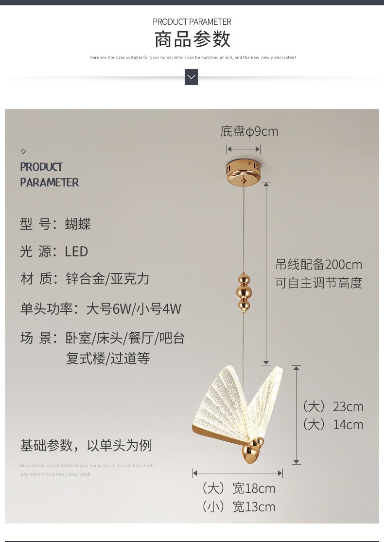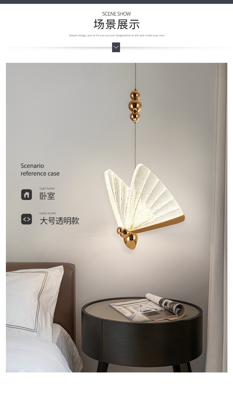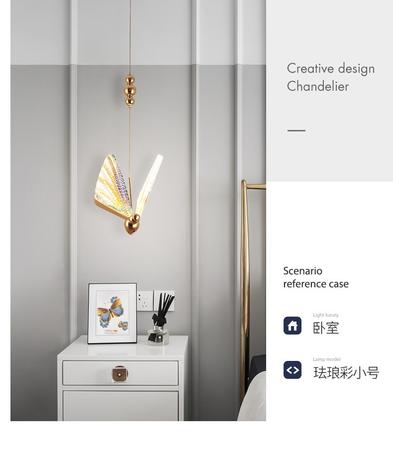 Pequeña lámpara de araña en la cabecera de la cama del dormitorio, red de lámpara de araña mariposa a largo plazo en el pasillo de la barra de fondo del sofá de televisión de la Sala de estar de lujo ligero