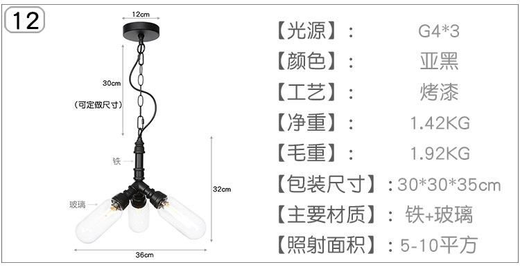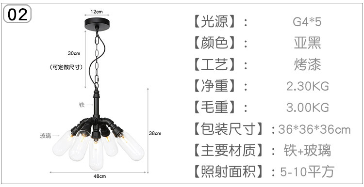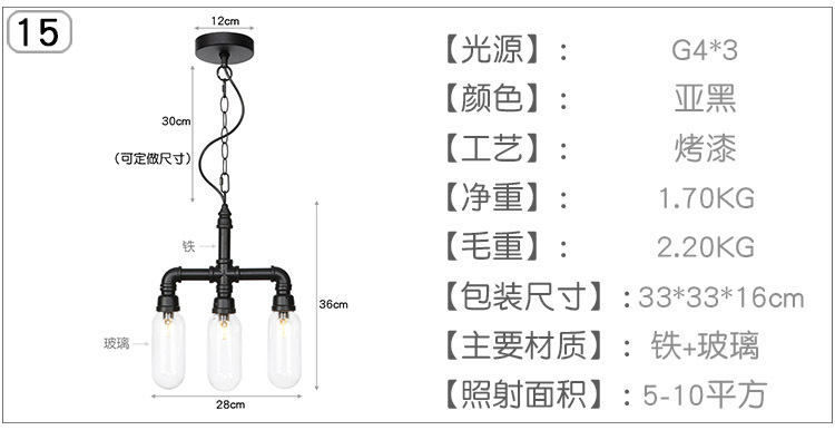 Amazon se especializa en arte rural americano, restaurante simple, bar, café, lámpara de araña de tubería de agua retro Industrial