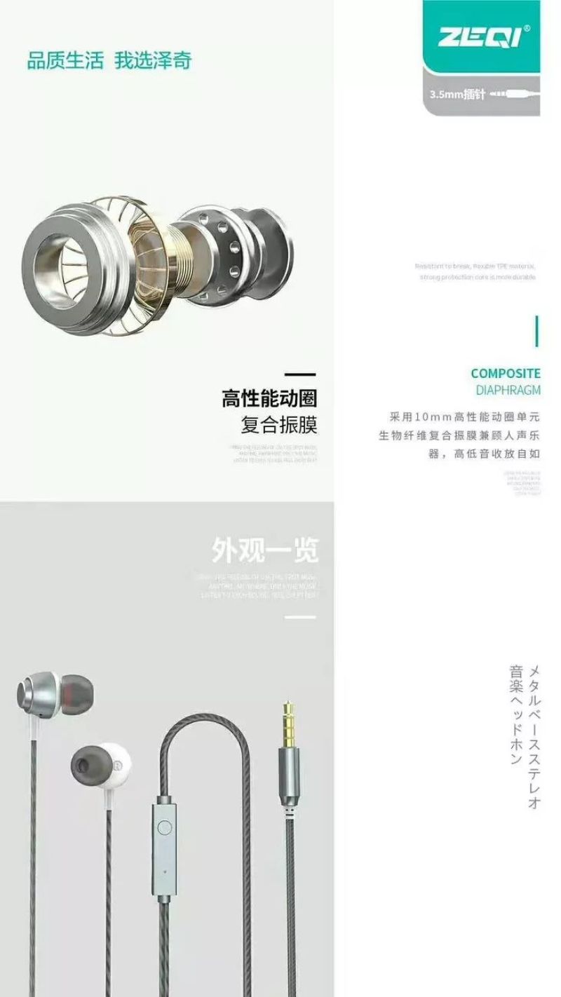 Auriculares de la marca ZQ en los oídos, teléfonos móviles, computadoras, auriculares de control de línea universal, auriculares de metal de bajo pesado al por mayor