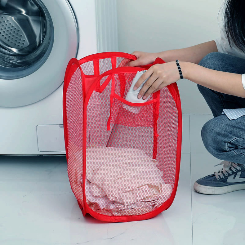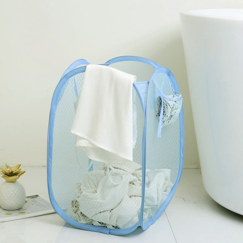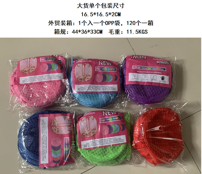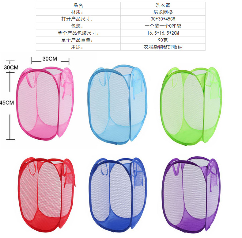 Cestas de lavandería de malla de nylon, juguetes de ropa para el hogar, cestas de almacenamiento, cestas plegables de ropa sucia al por mayor 1299