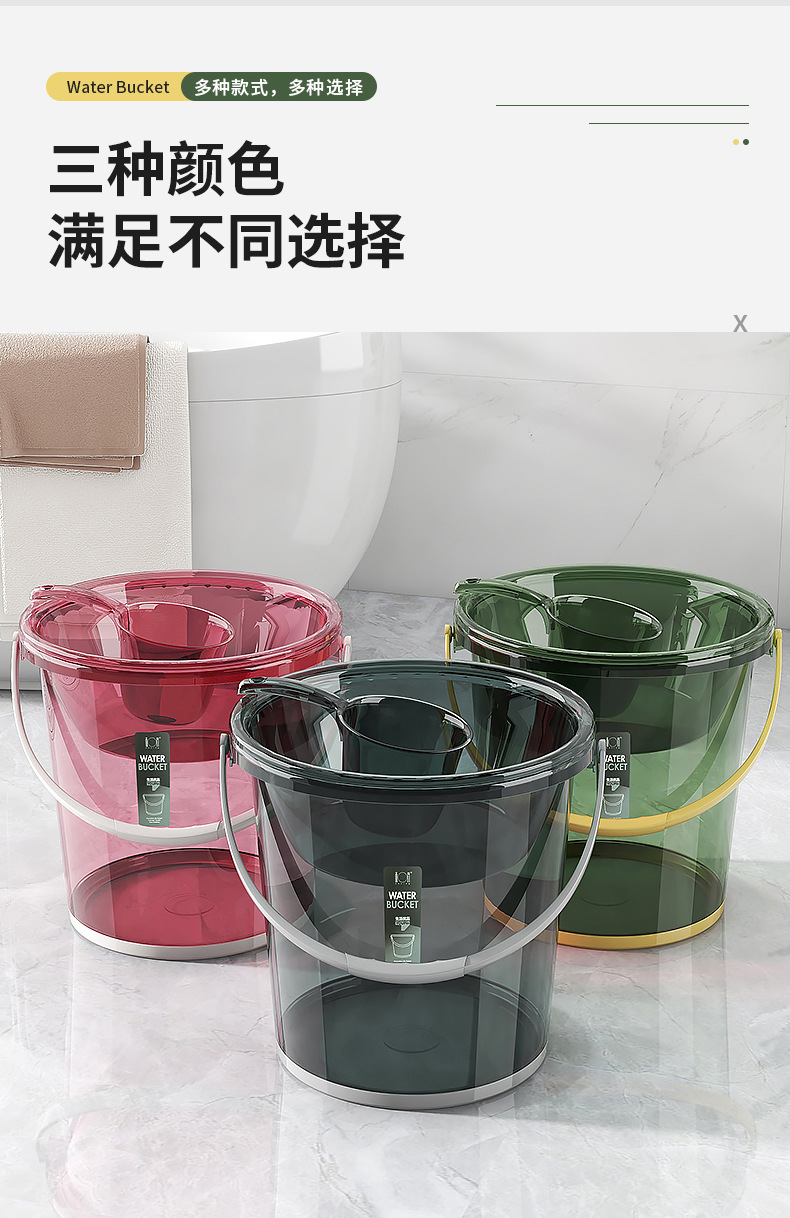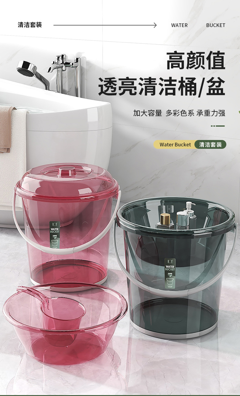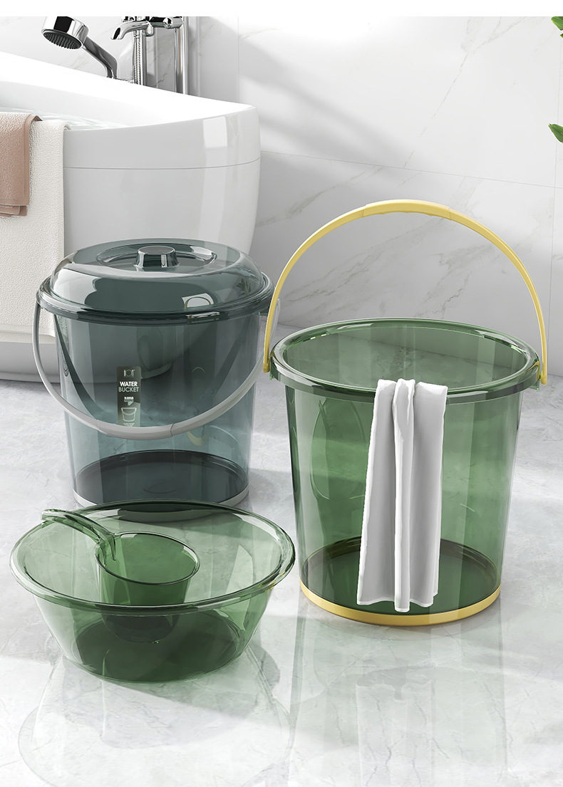 El hogar transparente engrosa el cubo de almacenamiento de agua grande para bañarse el cubo de plástico de gran capacidad con tapa y cubo de lavado de automóviles al aire libre con mango