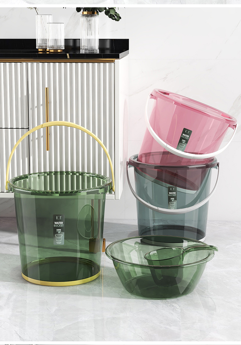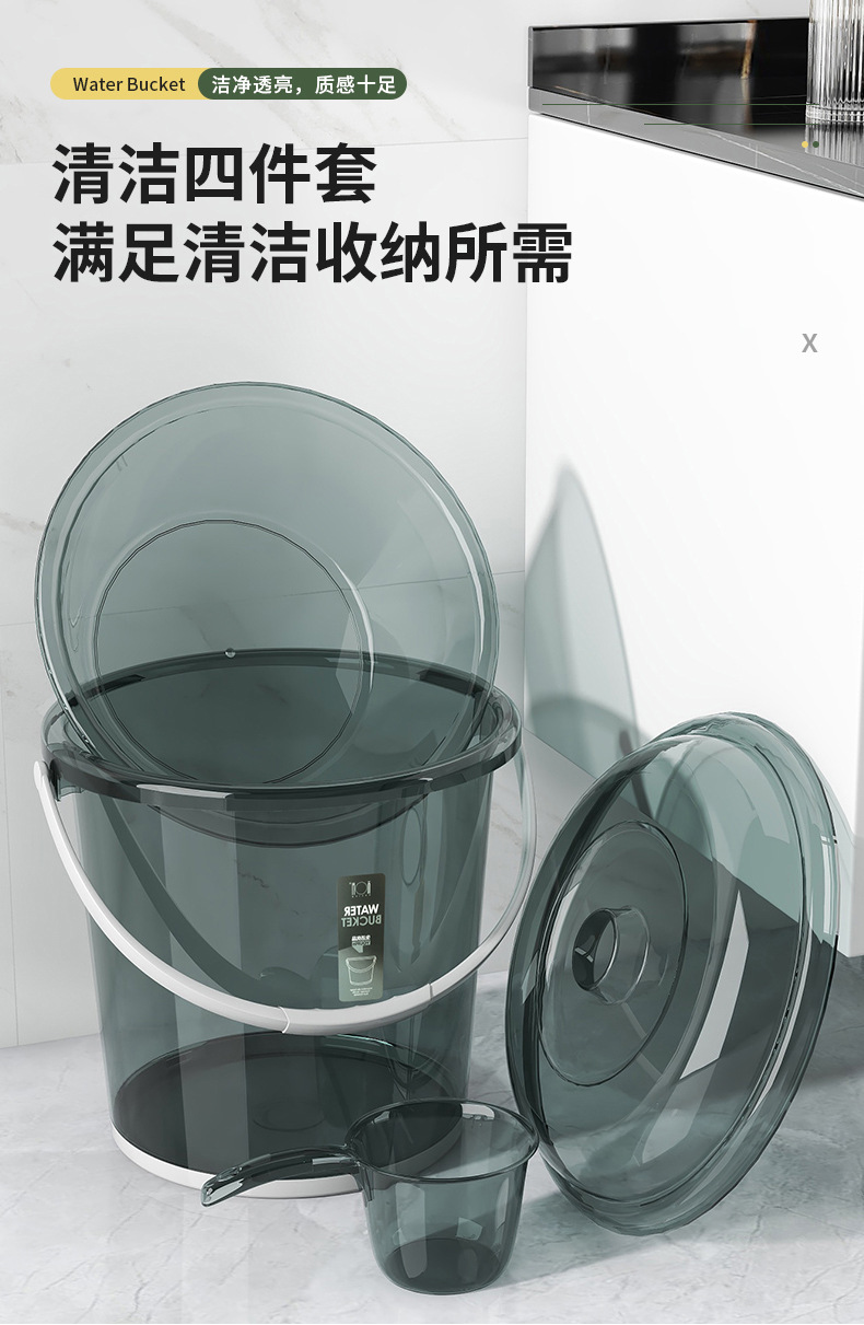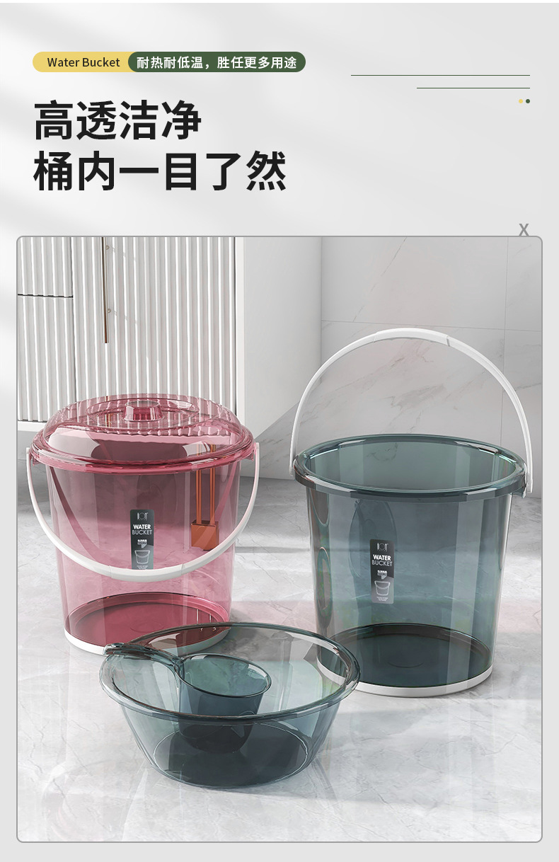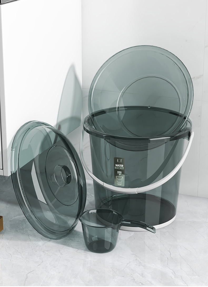 El hogar transparente engrosa el cubo de almacenamiento de agua grande para bañarse el cubo de plástico de gran capacidad con tapa y cubo de lavado de automóviles al aire libre con mango