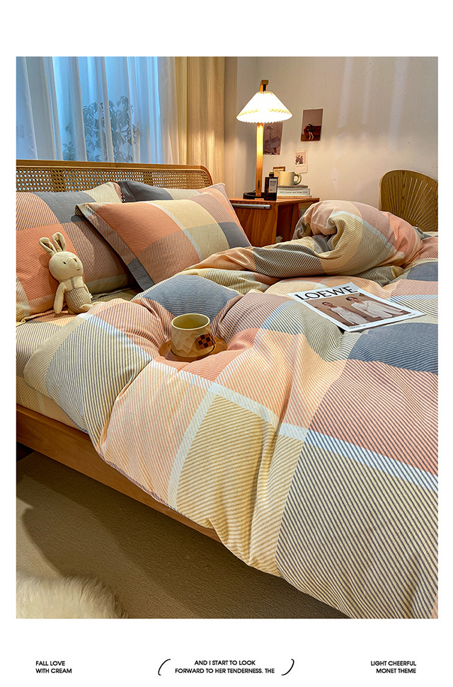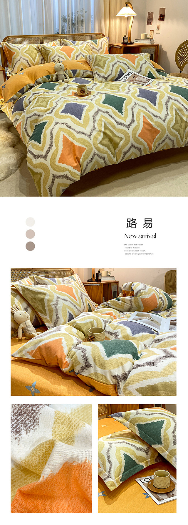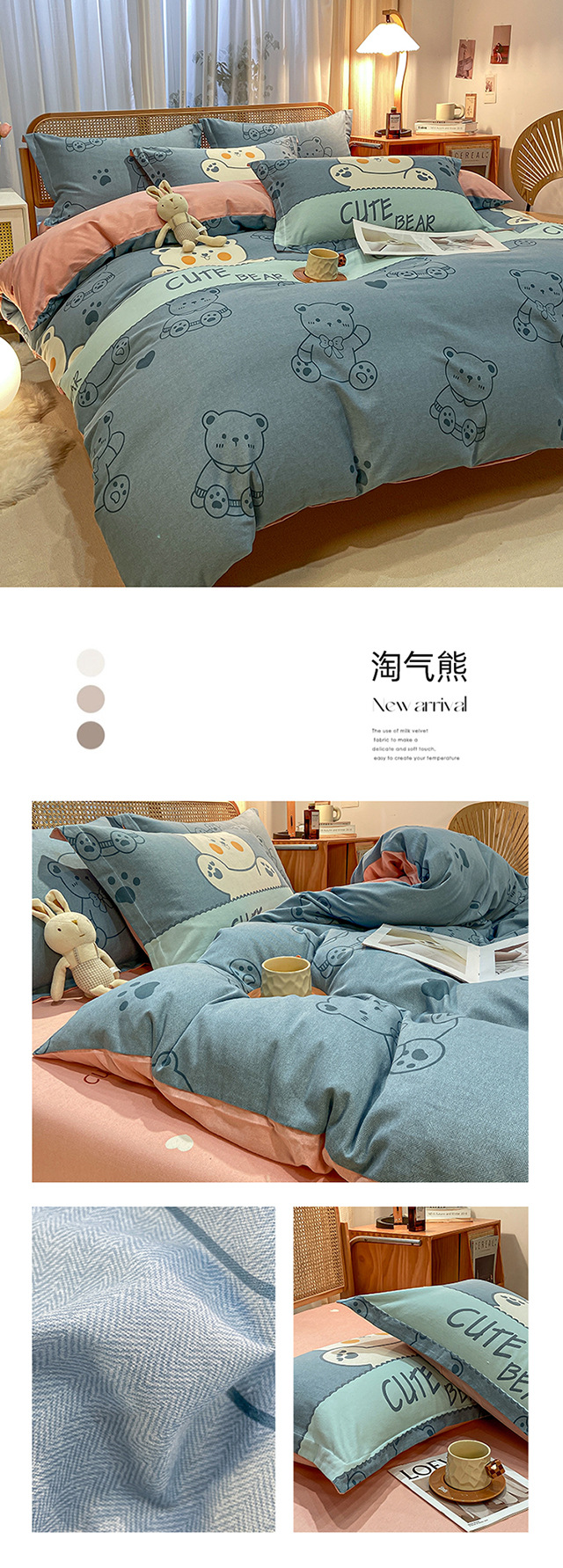 Nuevo juego de cuatro piezas de algodón molido engrosado, sábanas de algodón, edredones, hojas de cama, ropa de cama de cuatro piezas