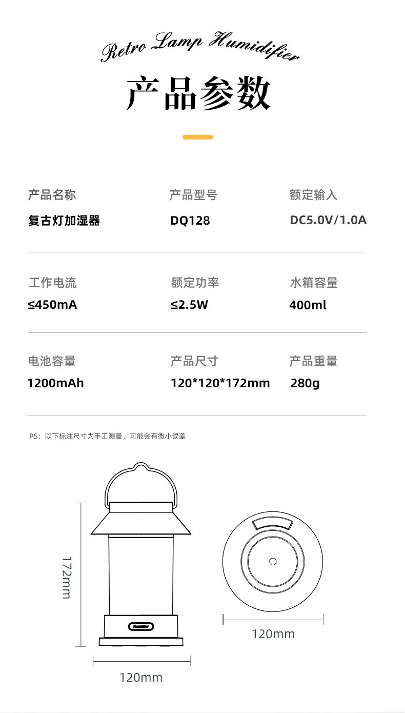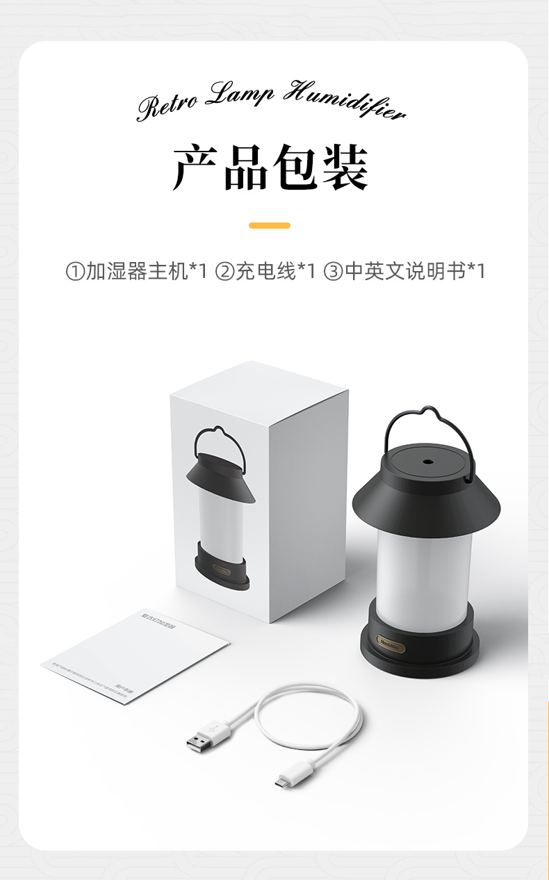 Lámpara de caballo retro de tendencia, humidificador, luz cálida, luz blanca, Humidificador de pulverización delicado, lámpara de mano