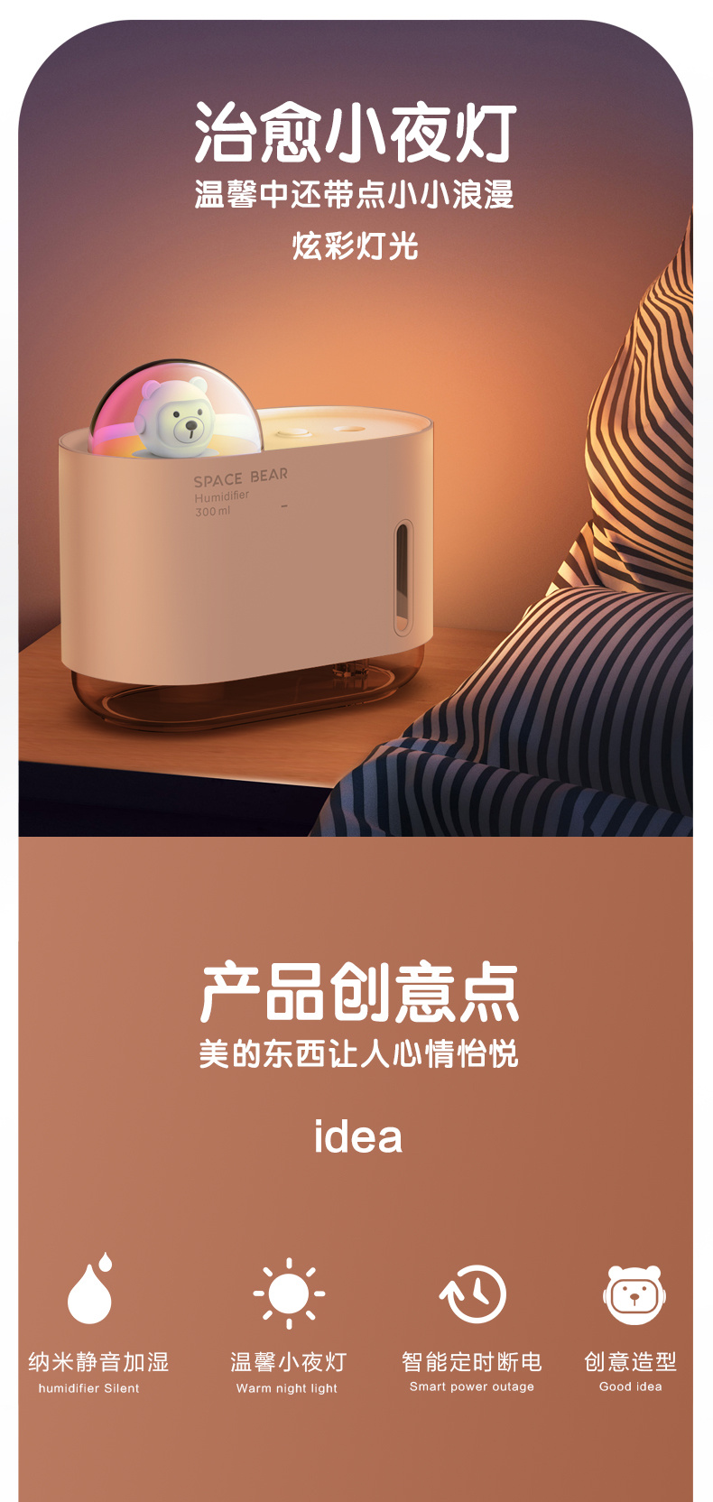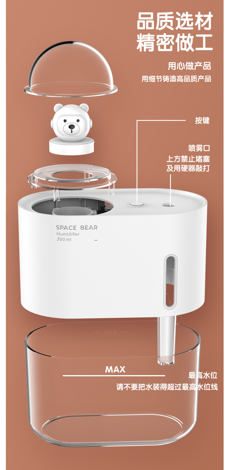 Humidificador doméstico pequeño dormitorio silencioso Oficina de carga USB lindo Humidificador