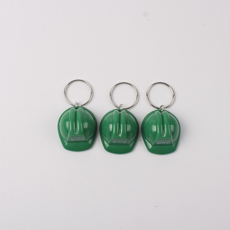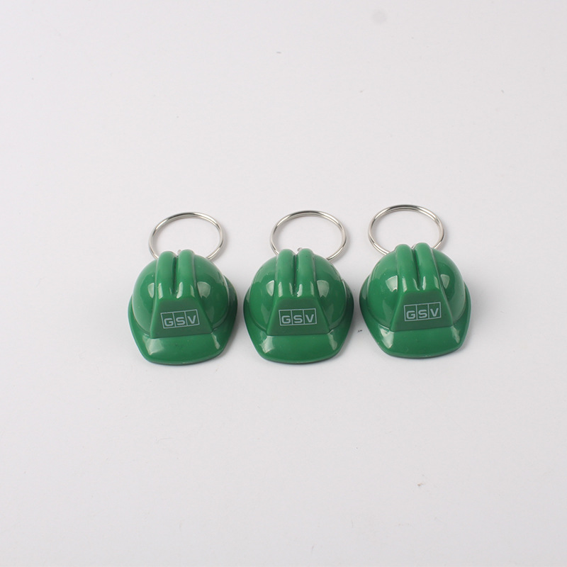 Logotipo del invitado imprimible mini casco llavero de casco de Seguridad verde llavero de casco de plástico