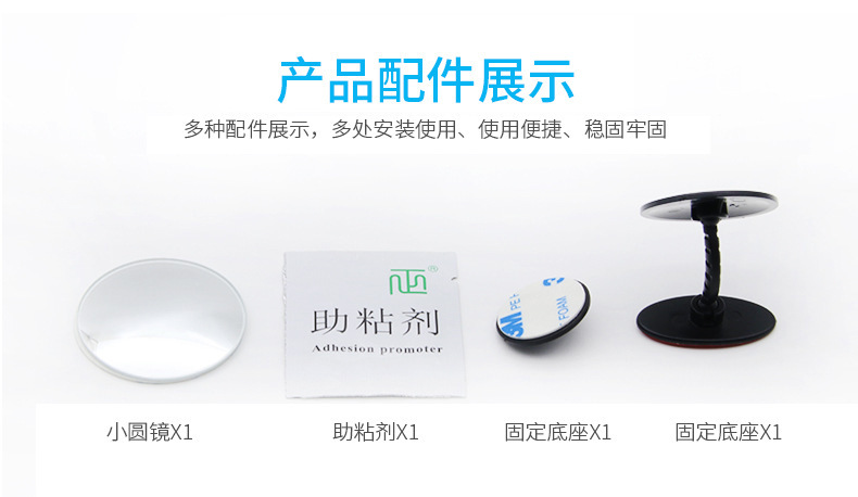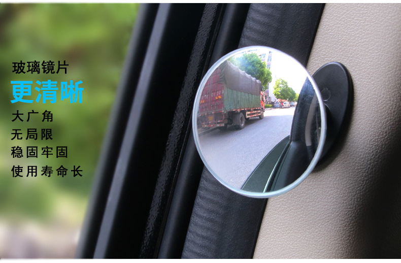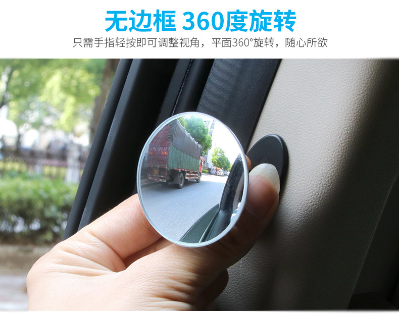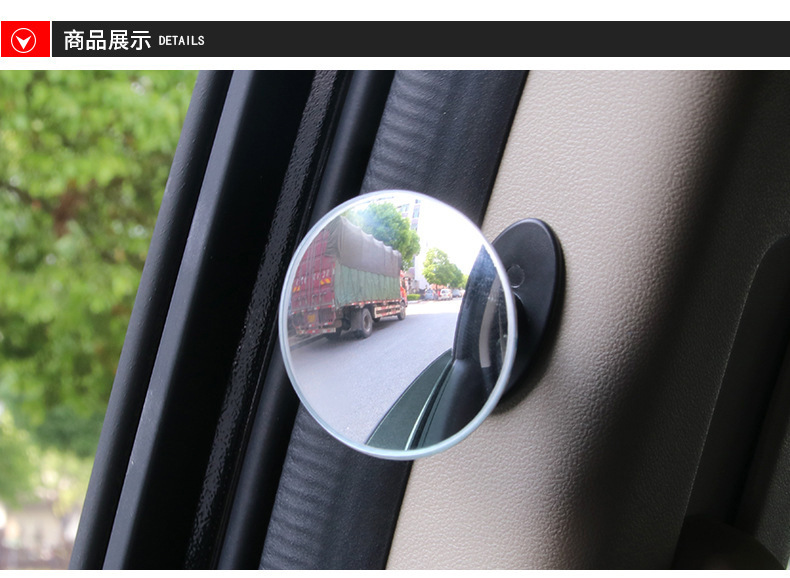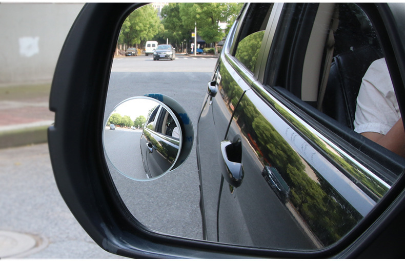 Un solo espejo redondo de 2 en 1 automóvil, dos filas en el lado de la puerta trasera, dos filas en el lado de la puerta para ayudar al espejo retrovisor a retroceder sin marco de vidrio