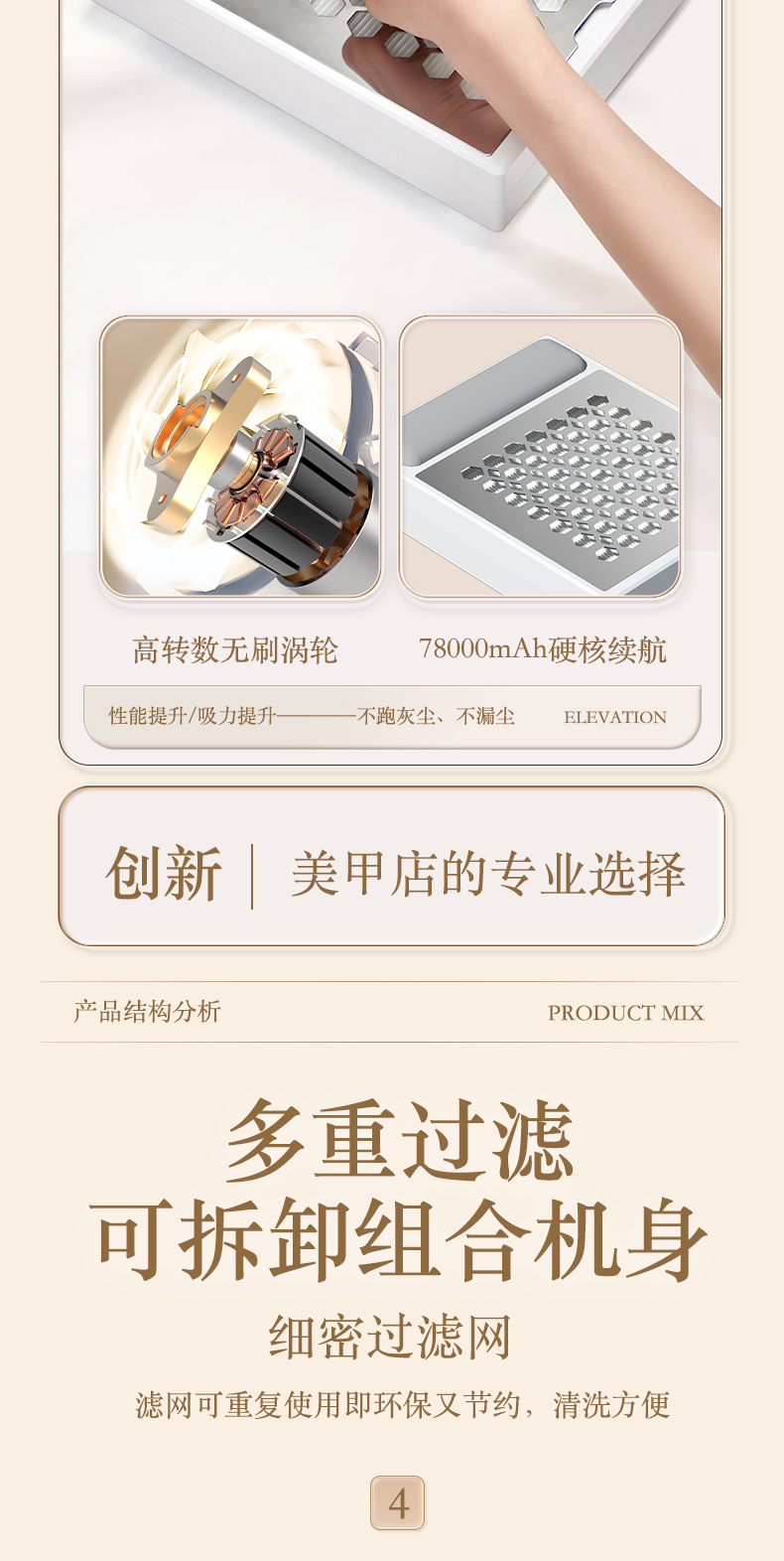 Aspiradora de manicura de turbina de almacenamiento de energía de 56w nueva aspiradora de manicura de alta succión, descarga de manicura y pulido sin polvo de alta potencia