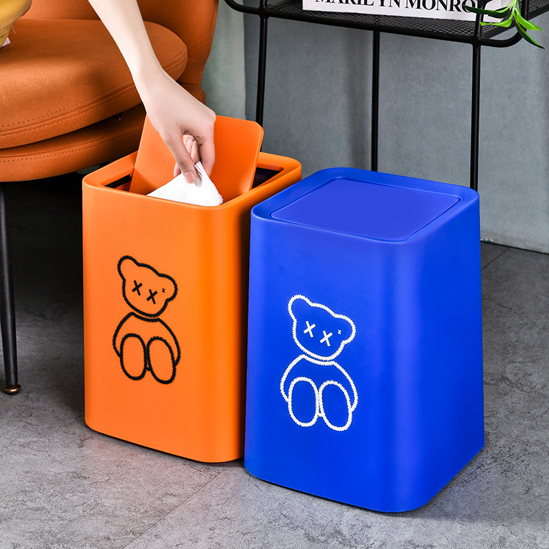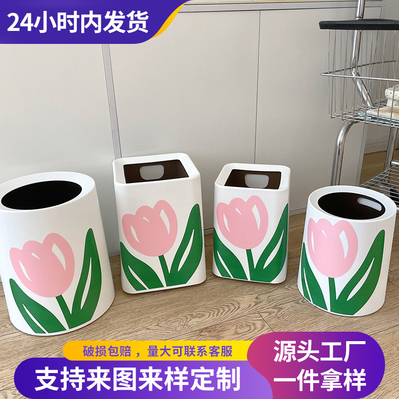 Papelera de escritorio de oficina sin tapa japonesa de doble capa, Sala de estar, dormitorio, baño, cocina impresa, bote de basura doméstico