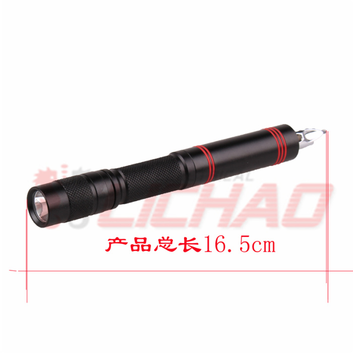 品名:工具电筒 产品材料:铝合金 电池:1节5号电池 常规颜色:黑色 常规包装:白盒 装箱数量:200/箱